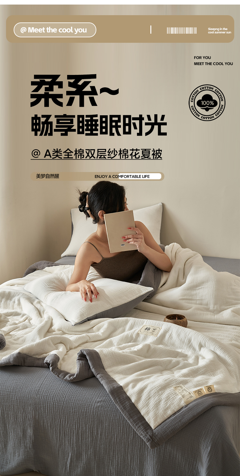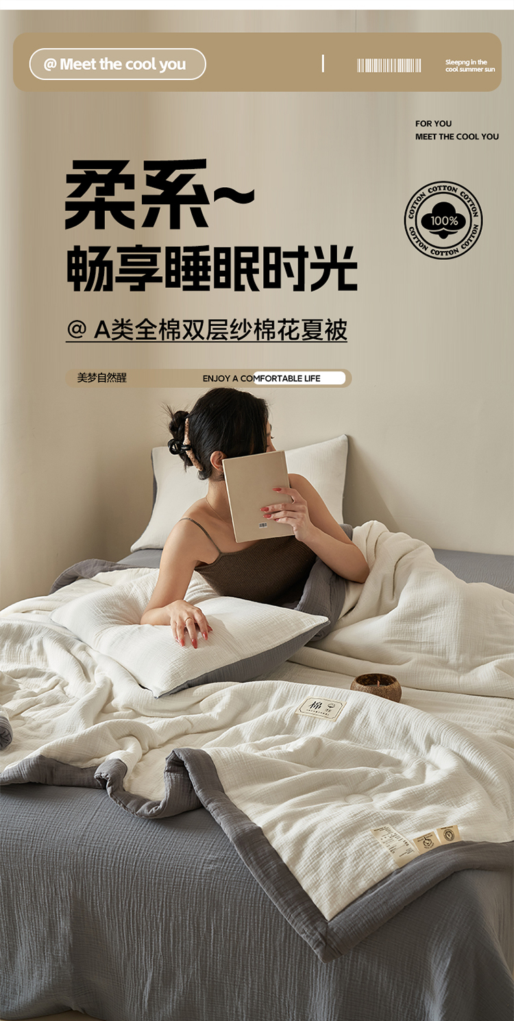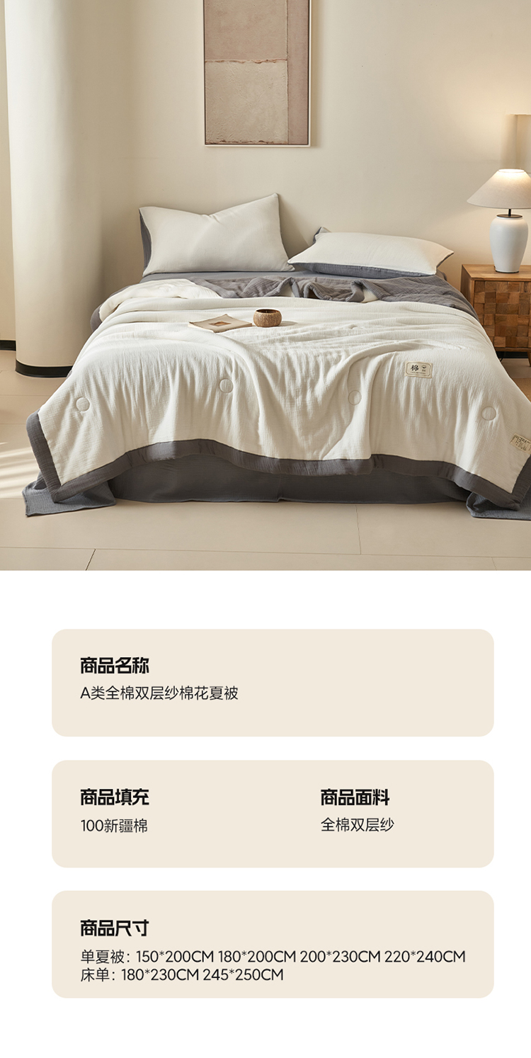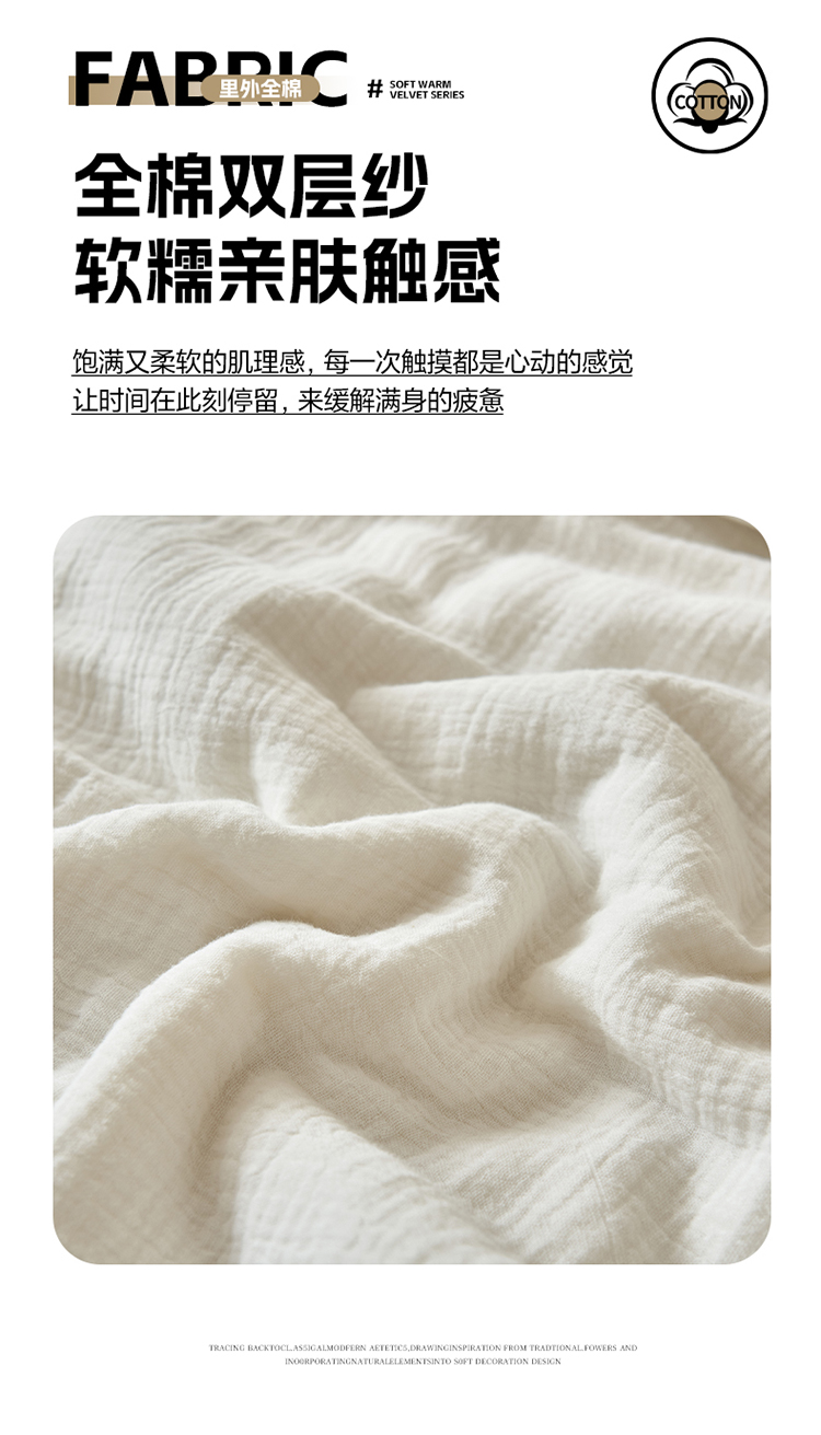当前位置: 91家纺网 > 商品网购 > 床品套件 > 四件套 > 夏被四件套 > 简如 2025新款A类全棉双层纱皱皱纱夏被四件套-简系列 本白