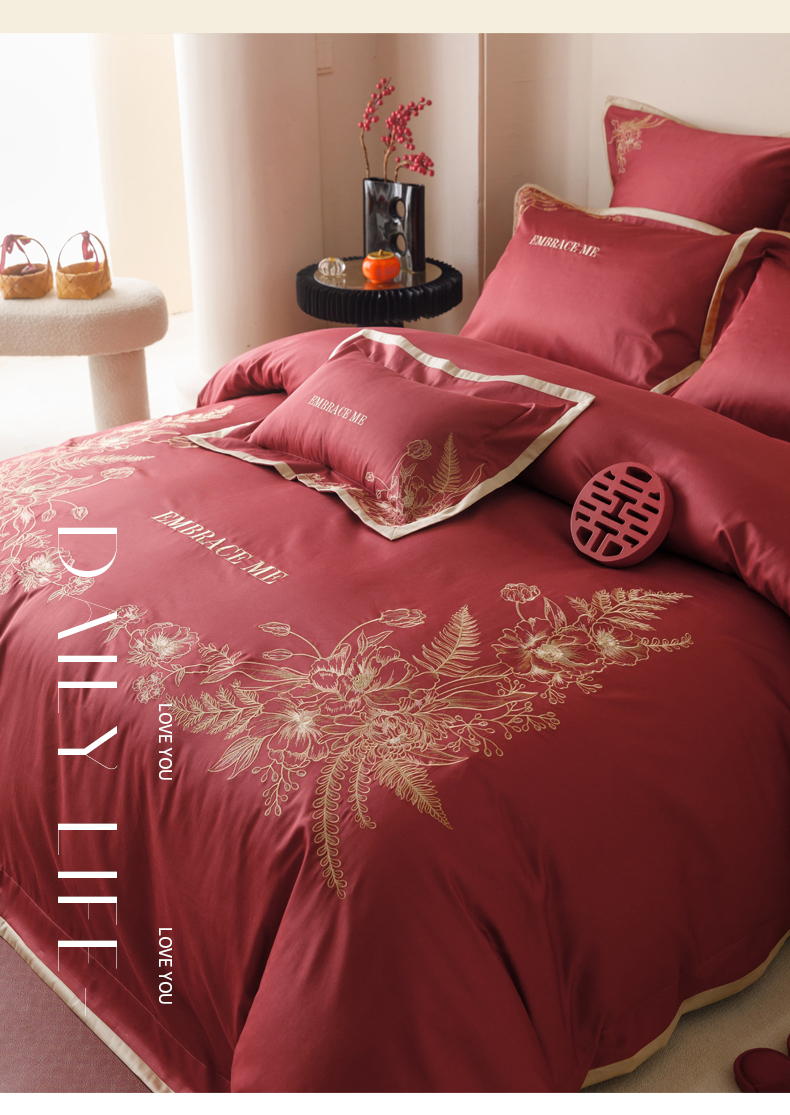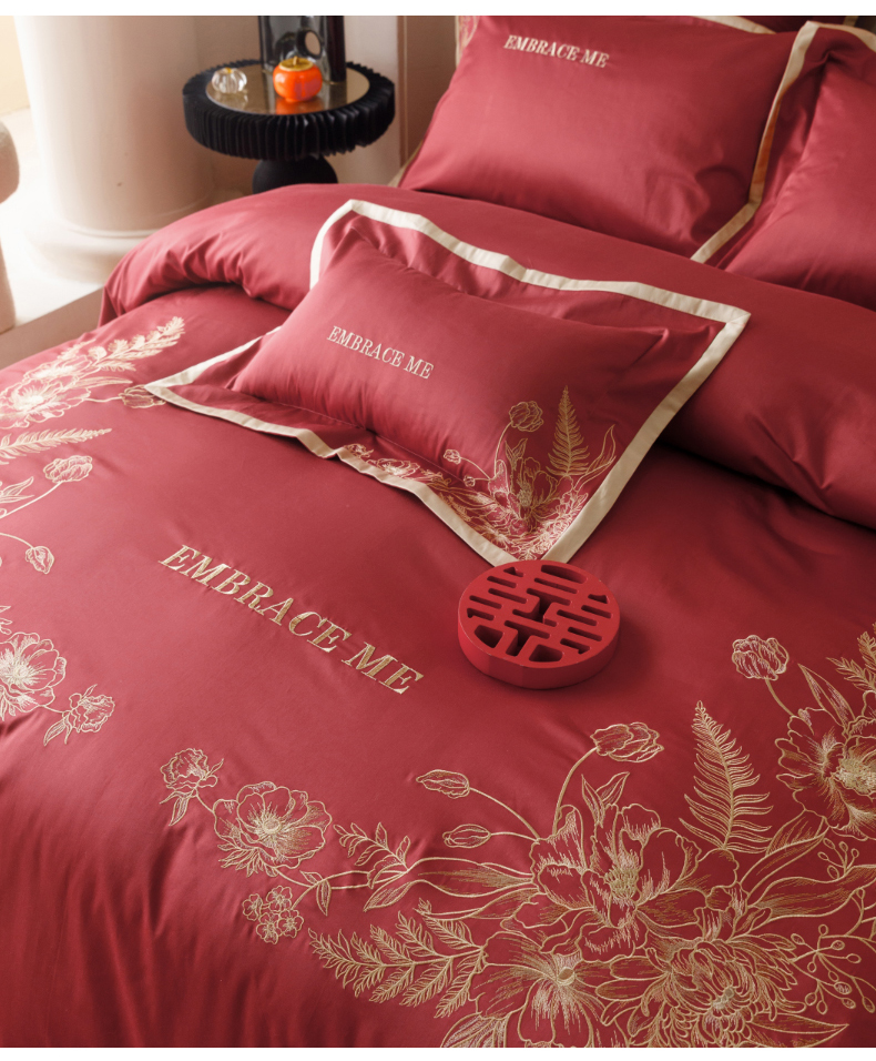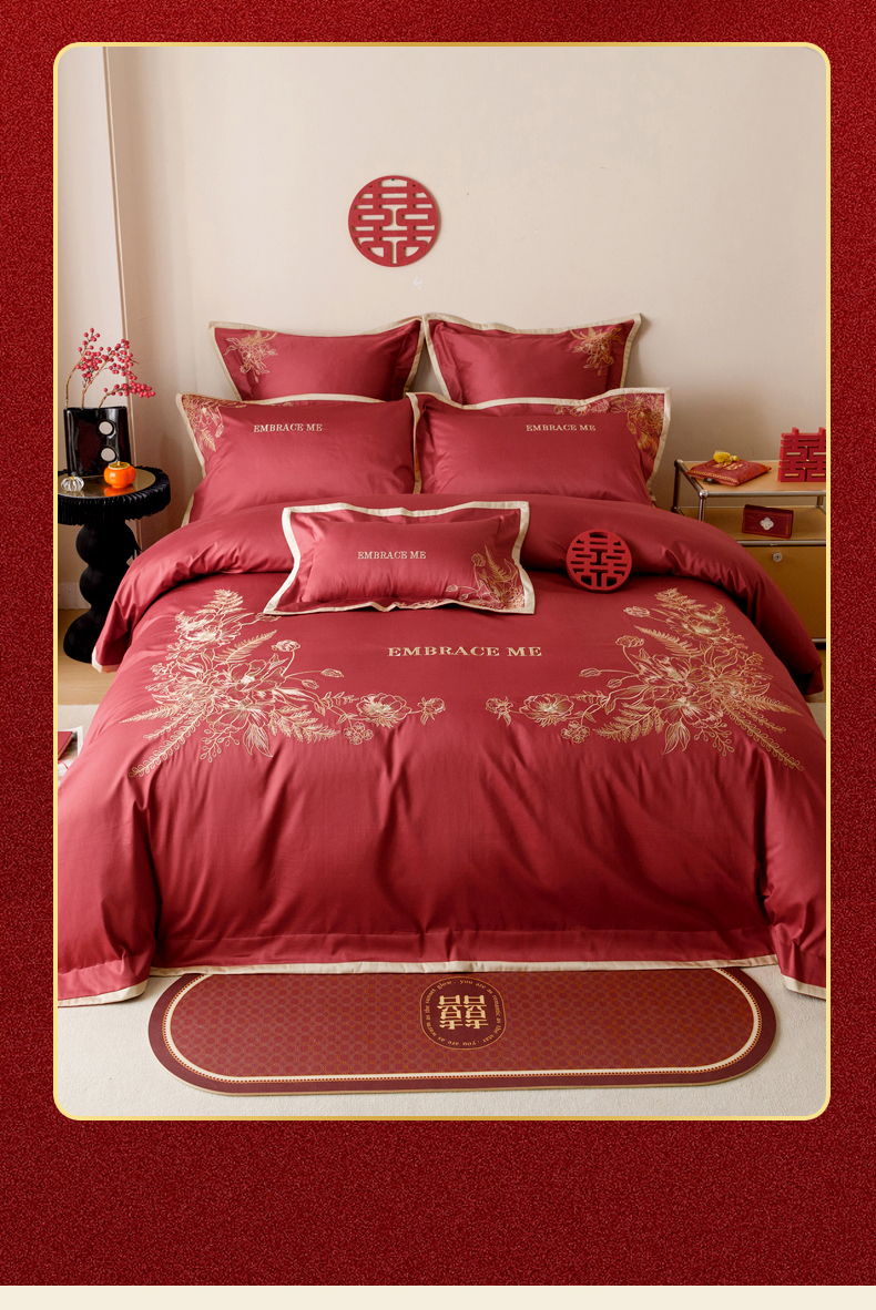 (总)慕晨 2024新款A类50支澳棉全棉纯棉贡缎婚庆绣花贴布绣四件套爆款,同心缘,花好月圆,花嫁,吾家有喜,喜庆缪缪