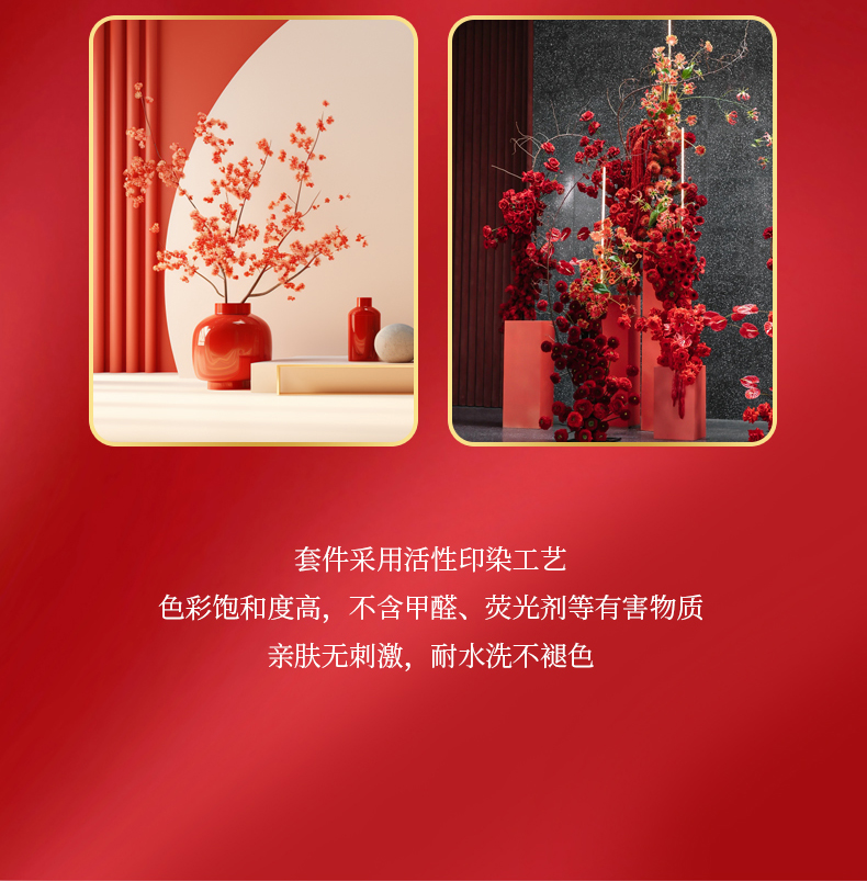 商品名称:慕晨2025新款50s澳棉全棉婚庆四件套控价卷后398元起 花好月圆