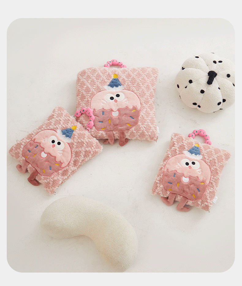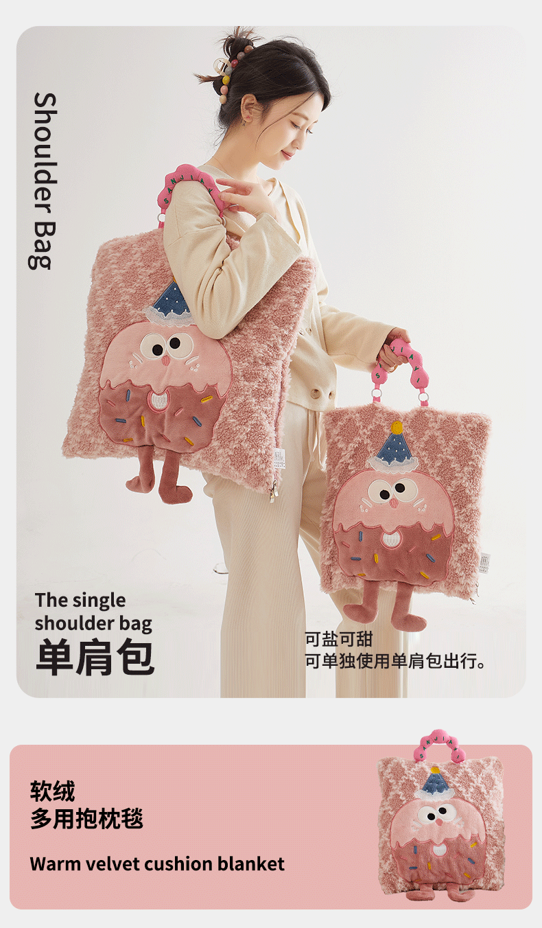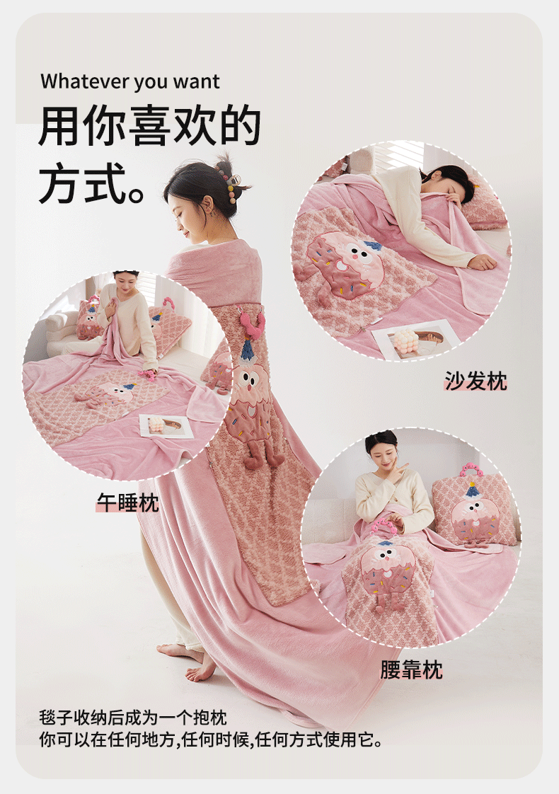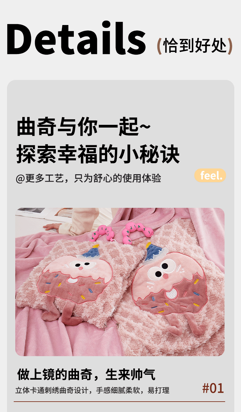 商品名称:古本家居 2025新款贴布立体卡通刺绣曲奇抱枕毯抱枕被 曲奇毛毯-嫩粉