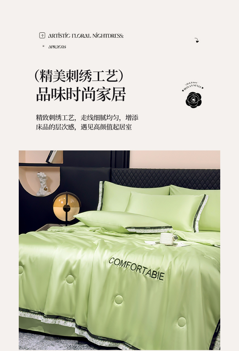 商品名称:2025新款清凉舒适水洗冰丝刺绣夏被四件套 迷境-青频绿