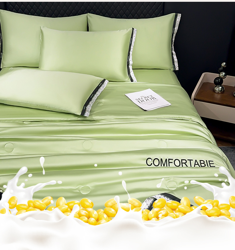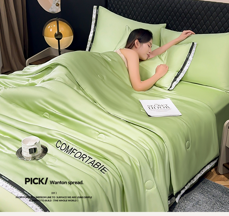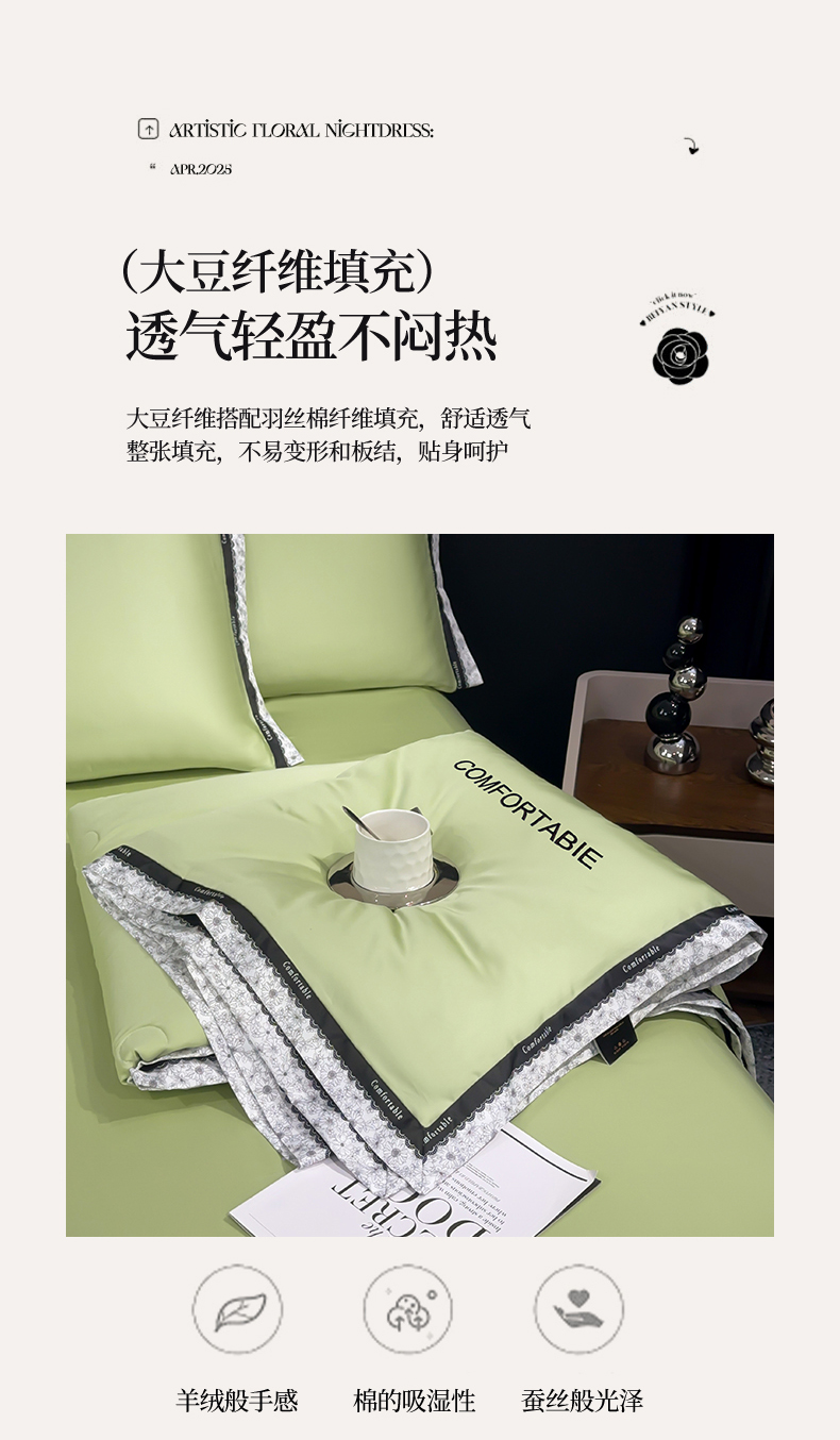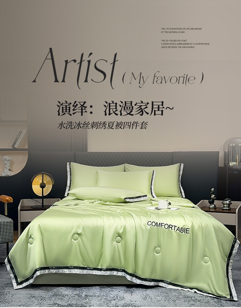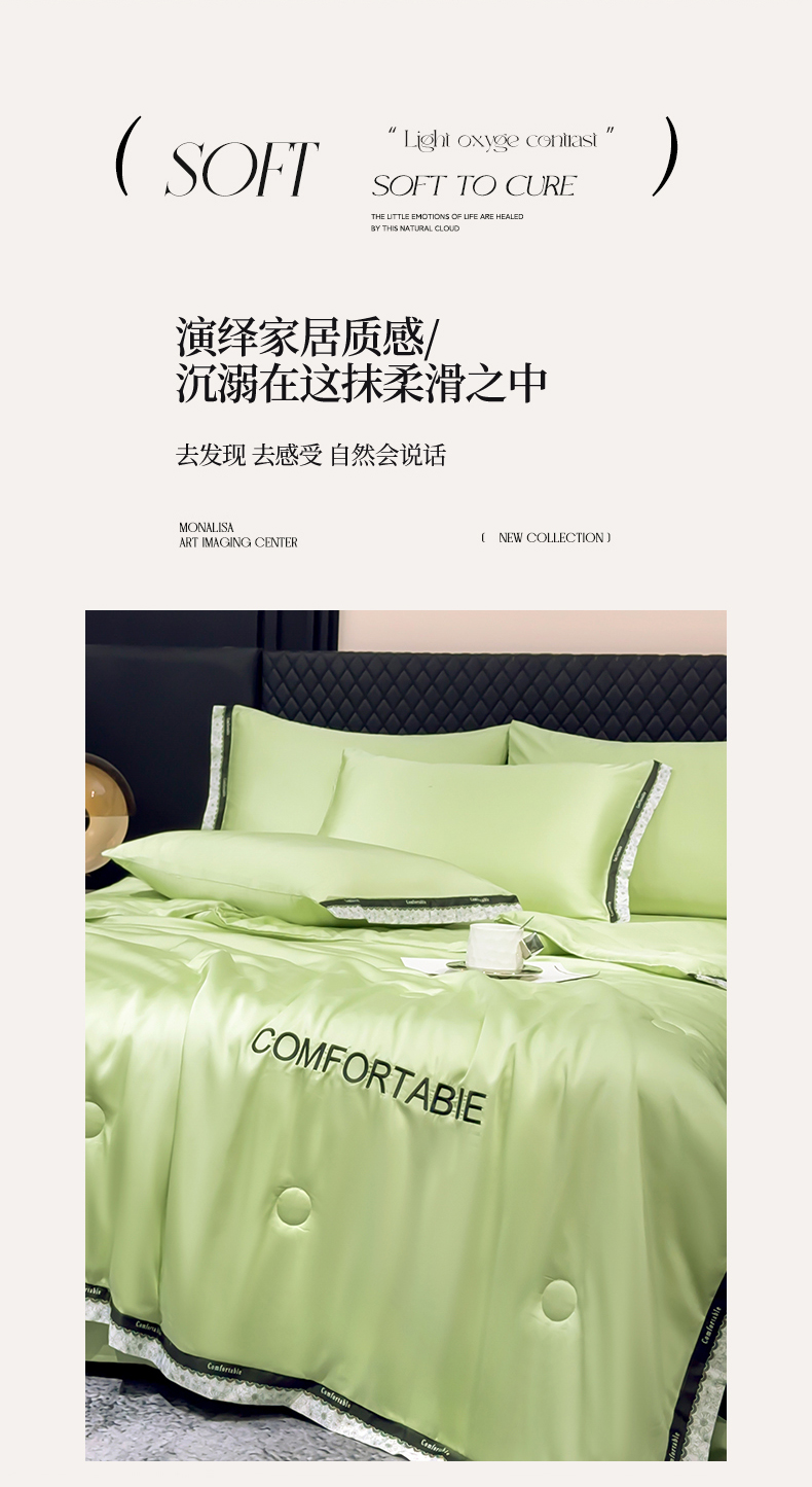 2025新款清凉舒适水洗冰丝刺绣夏被四件套 迷境-青频绿