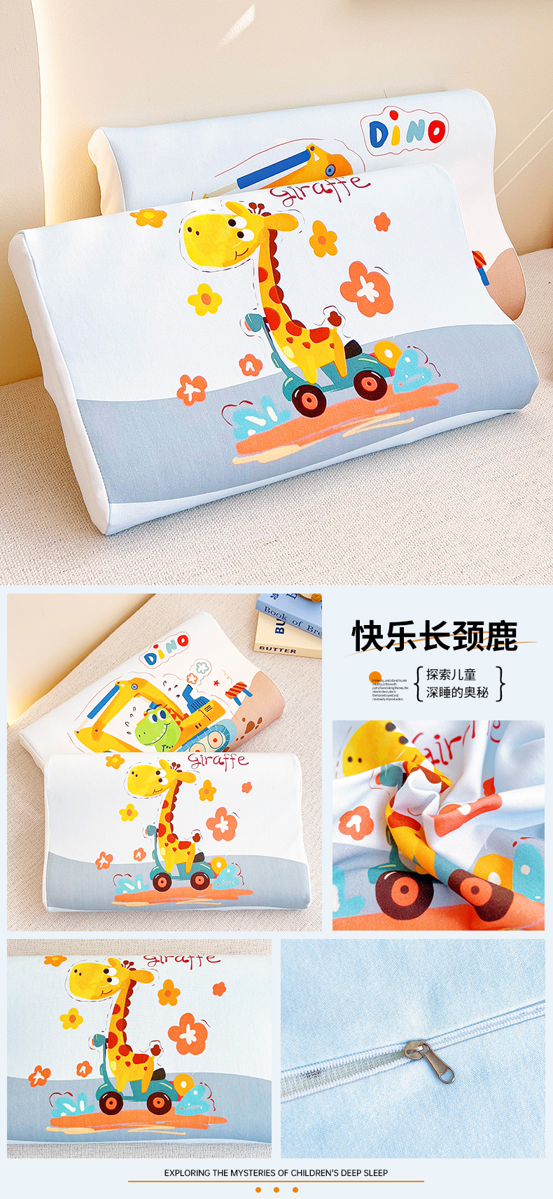 商品名称:梵赫 2025新款全棉A类儿童针织棉记忆枕(可拆卸) 快乐长颈鹿 单枕套