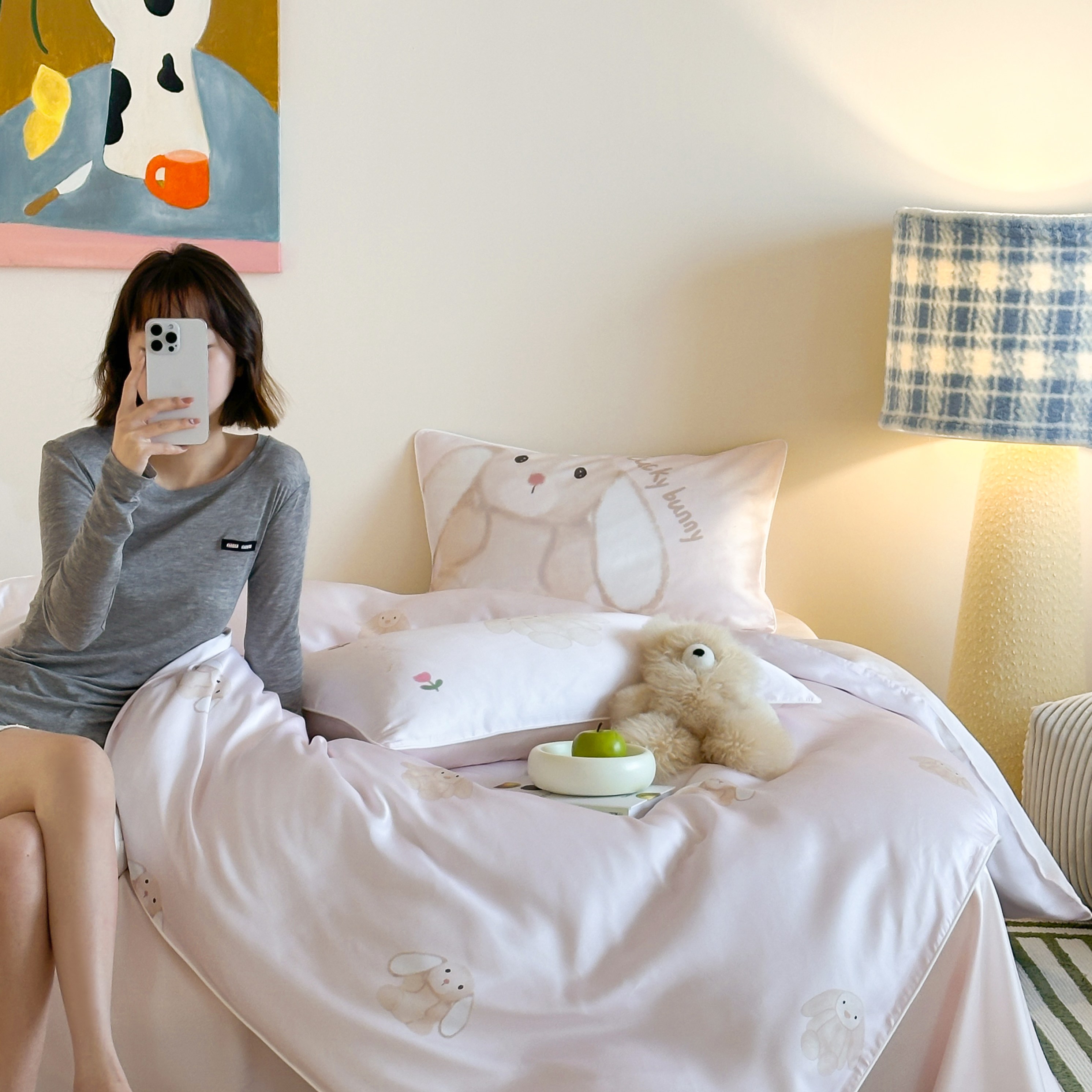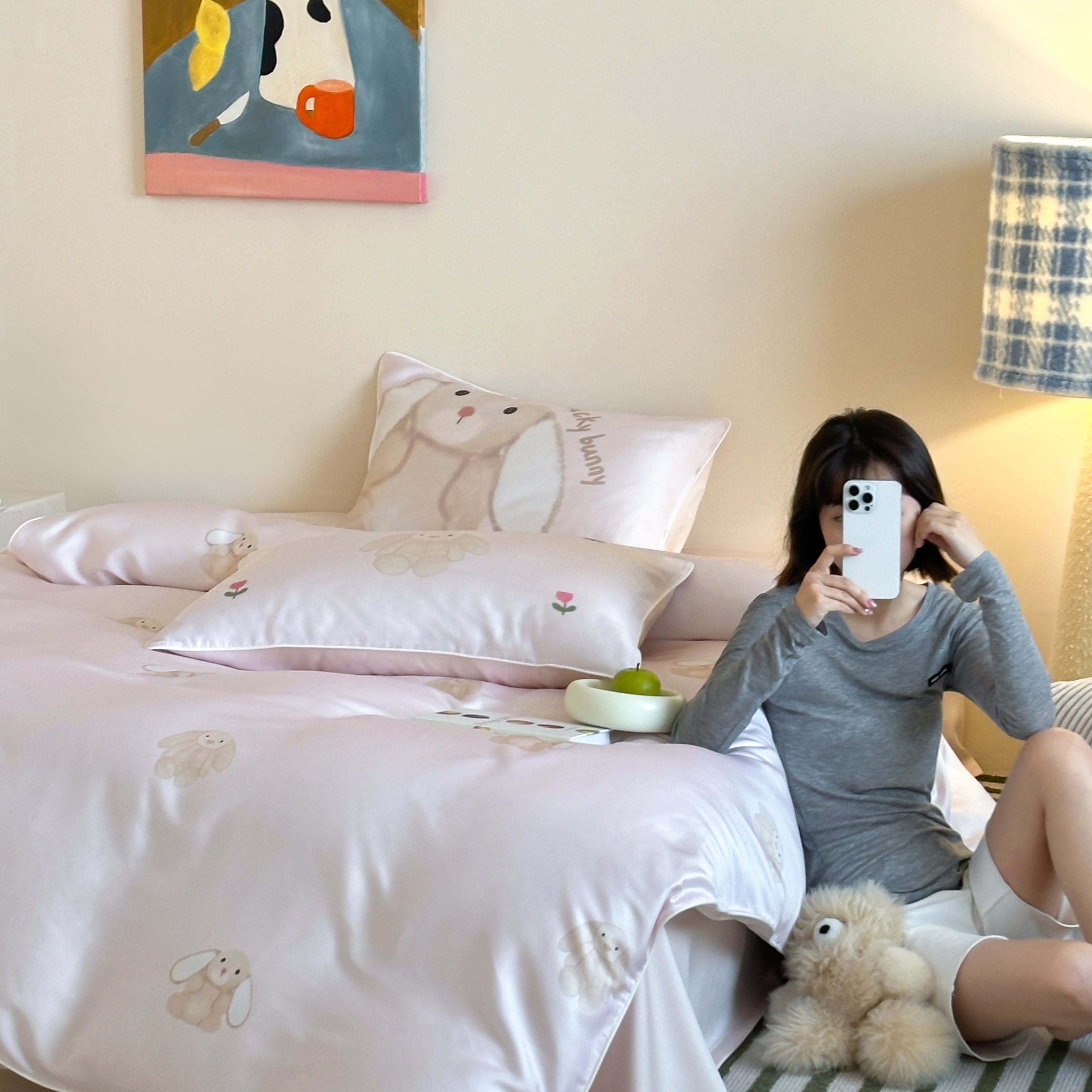 佳汐蓝家纺 2025春夏新款兰精天丝数码印花卡通四件套 杰瑞兔