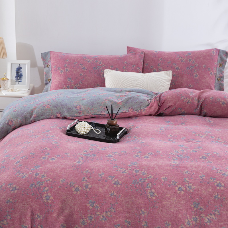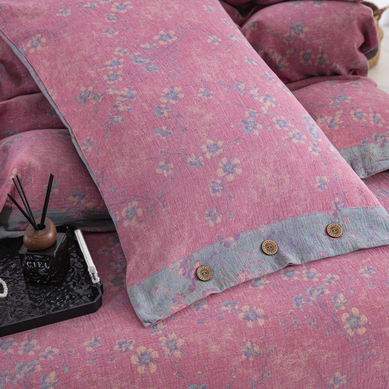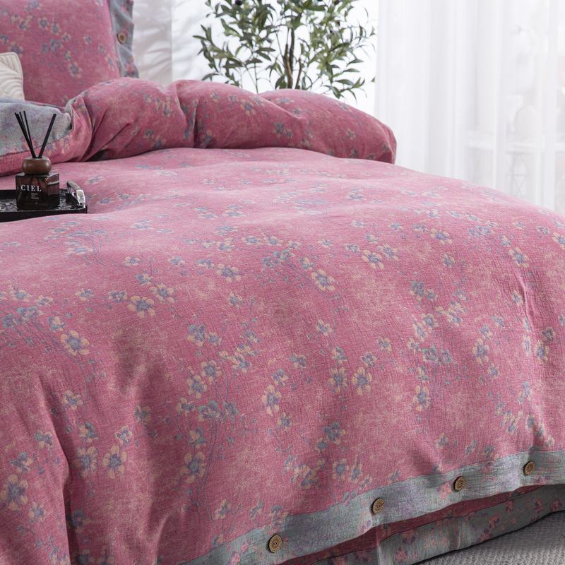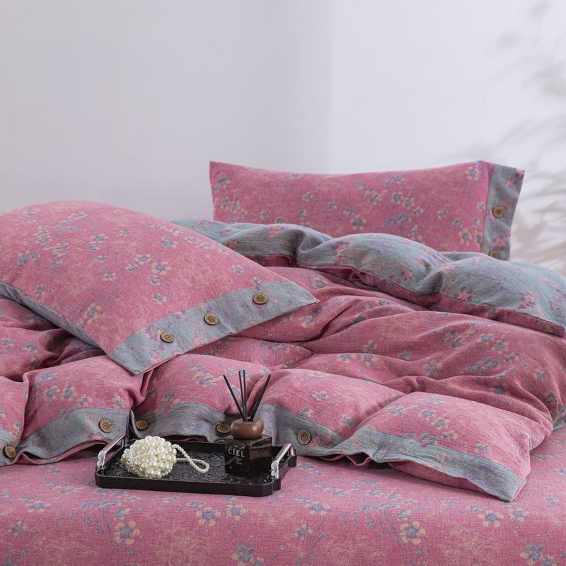 商品名称:2025新款全棉色织双层纱纽扣款四件套 织梦-粉