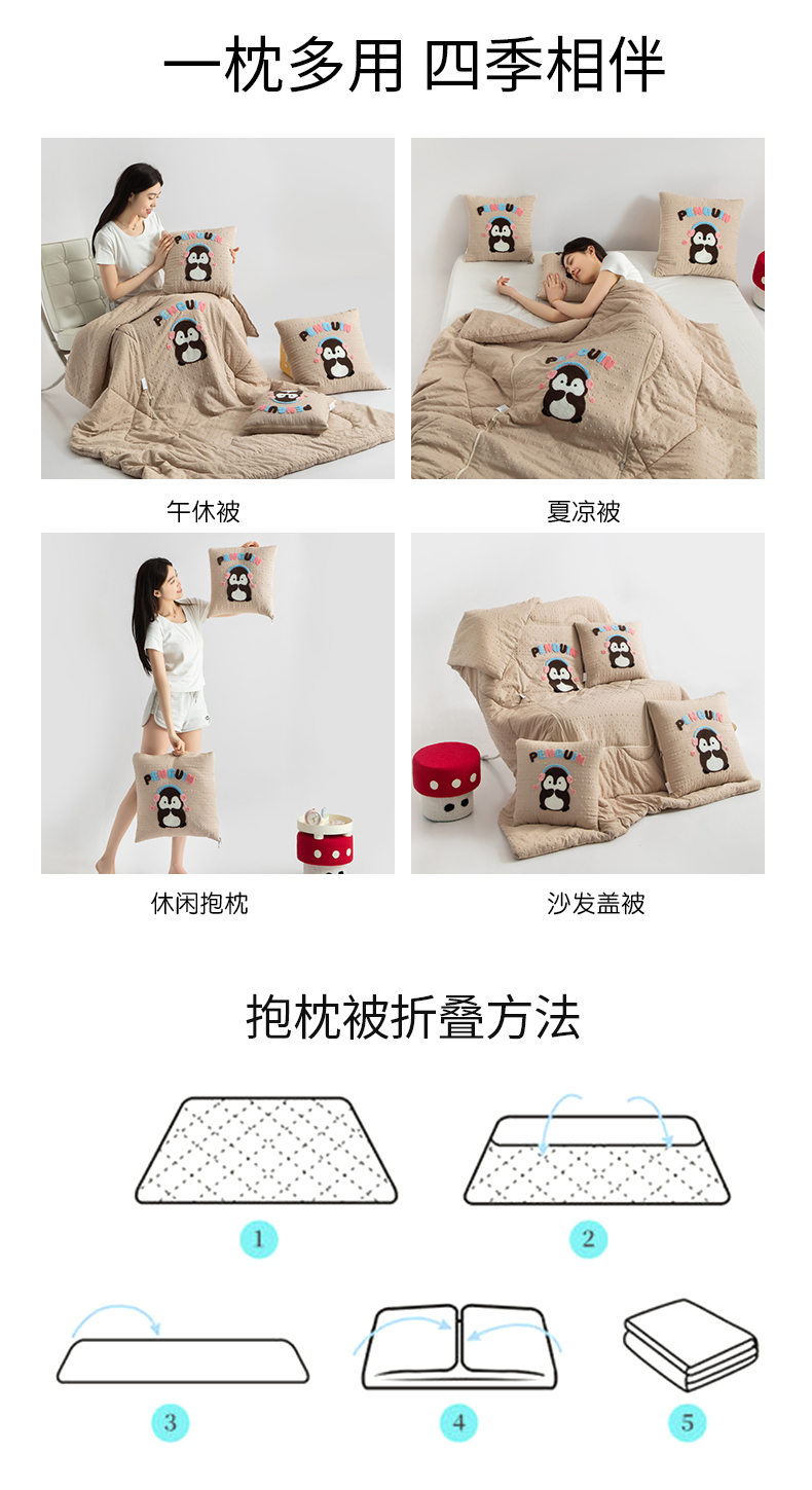 (总)2025新款加厚款图拉拉系列抱枕被,图拉拉粉色,图拉拉咖啡色,图拉拉卡其色