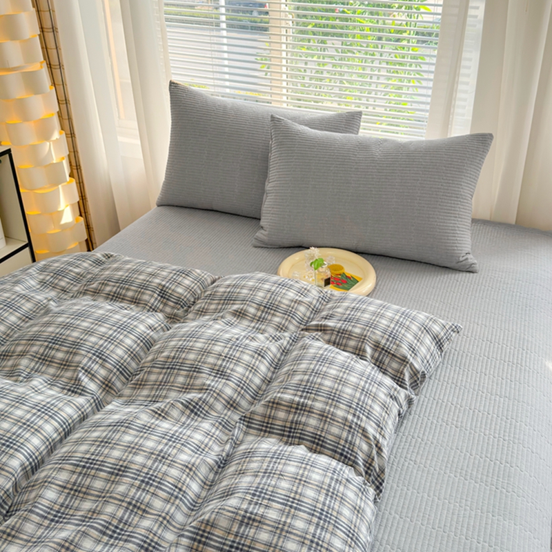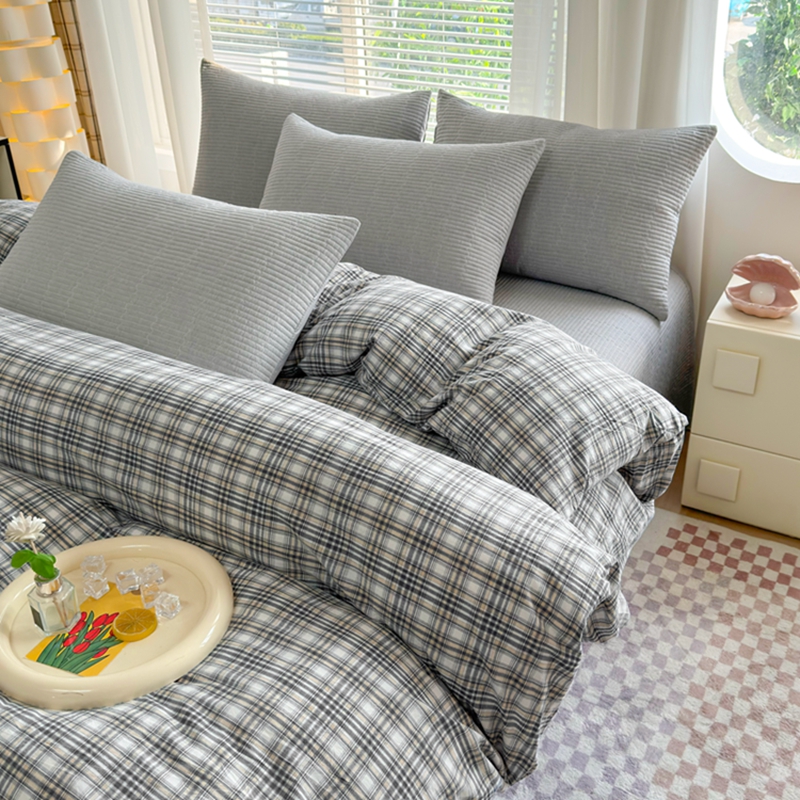 (总)梦精灵家纺 2025新款全棉纯棉色织水洗棉床盖四件套学生床宿舍被套床单枕套,可颂-咖,利奥-红,利奥-蓝,利奥-绿,罗恩-灰,维多利亚-米,西蒙-黄,西蒙-蓝,左岸-粉,雅灰,棕咖,鹅黄,幻影绿,桔红