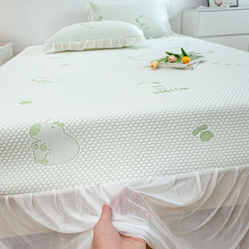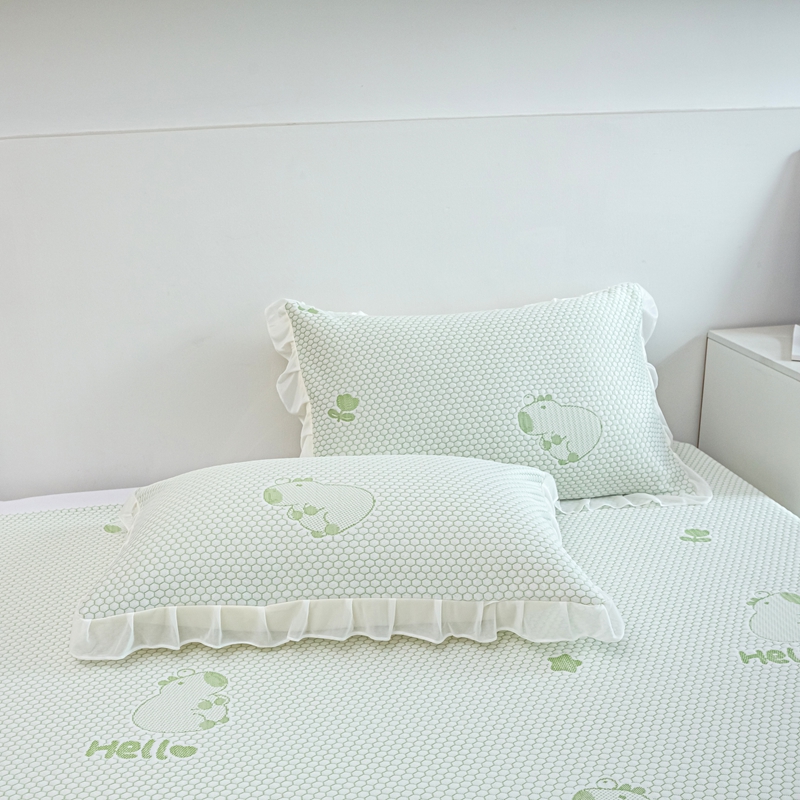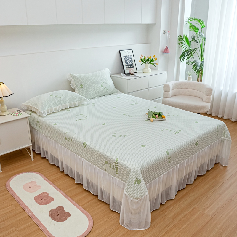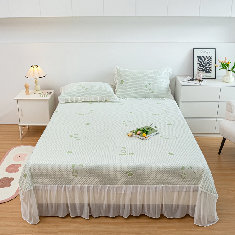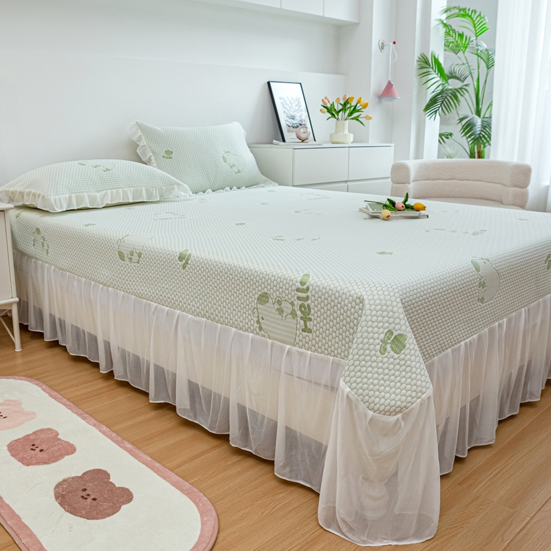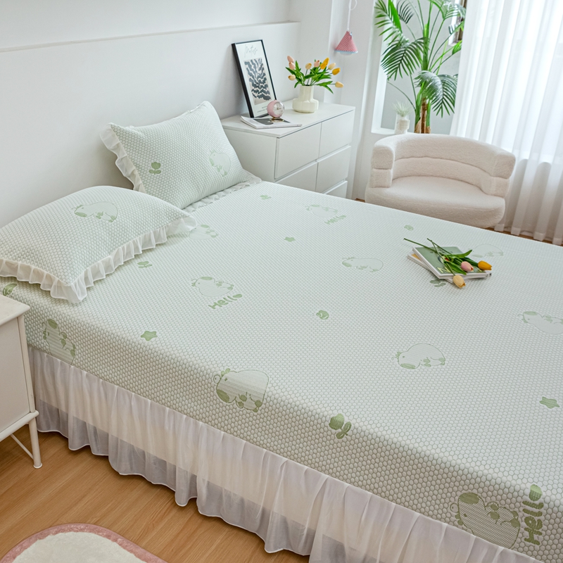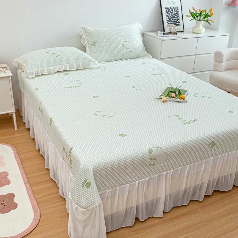 商品名称:春寻家纺 2025新款凉豆豆冰丝凉席席子-床裙款 卡皮巴拉-绿