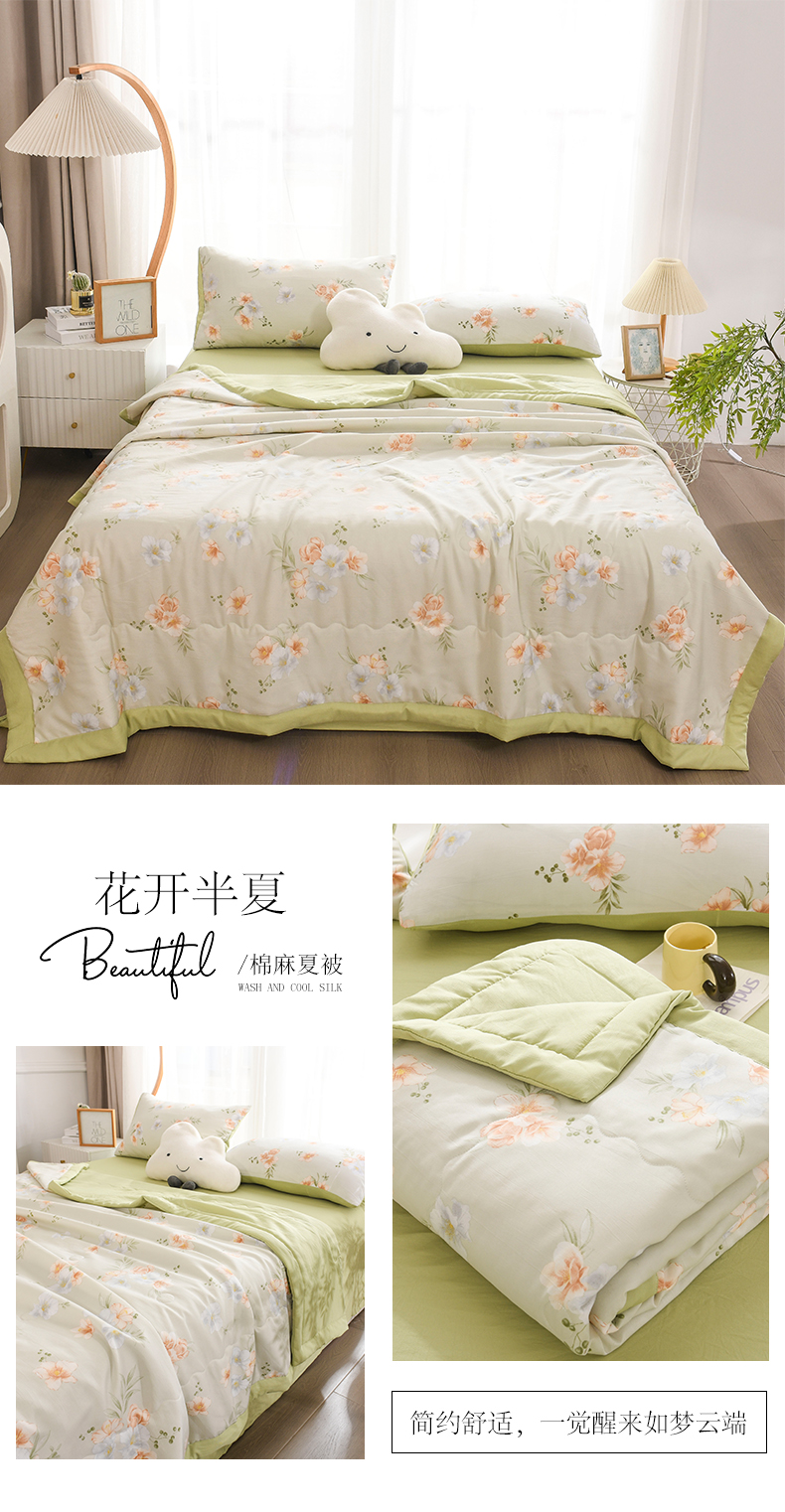 红日子纺织品 2025新款棉麻夏被四件套 青青世界