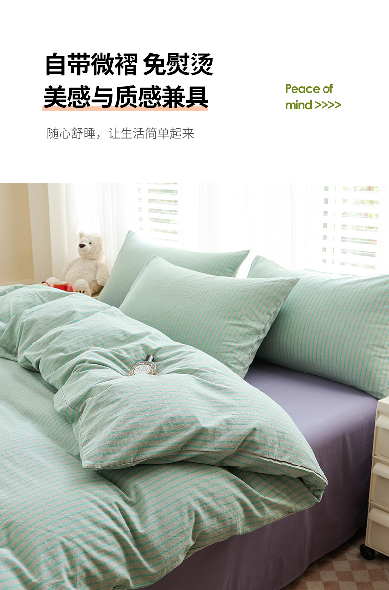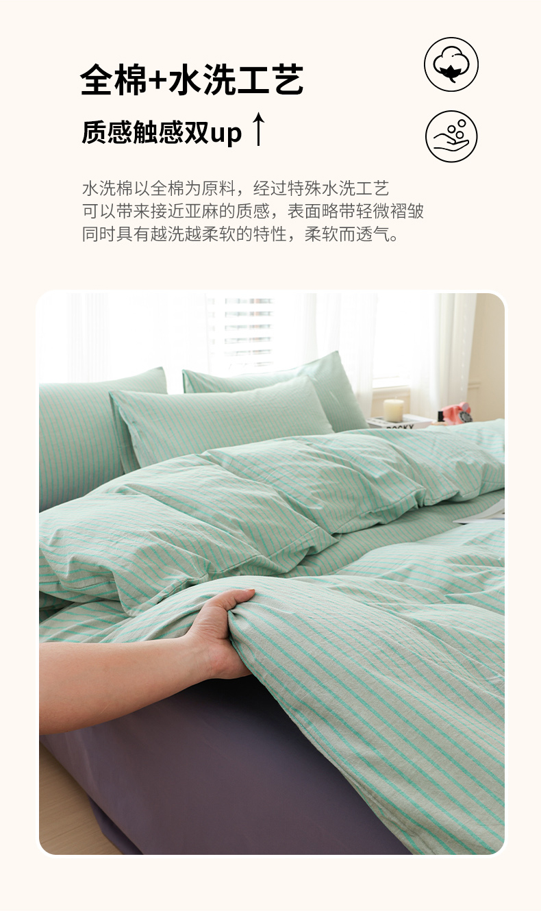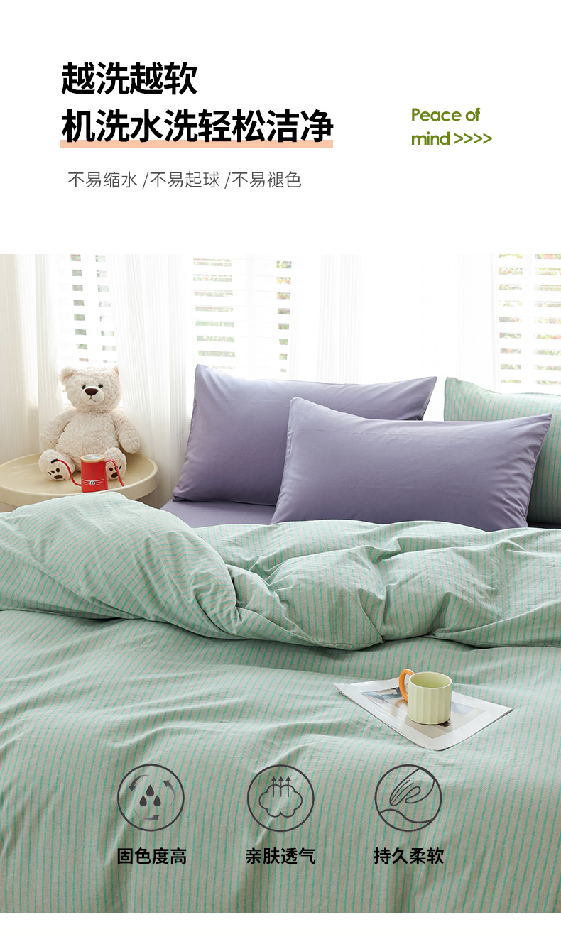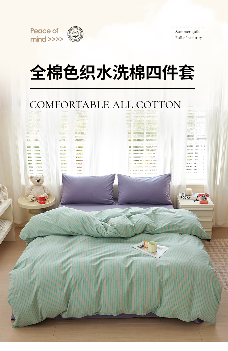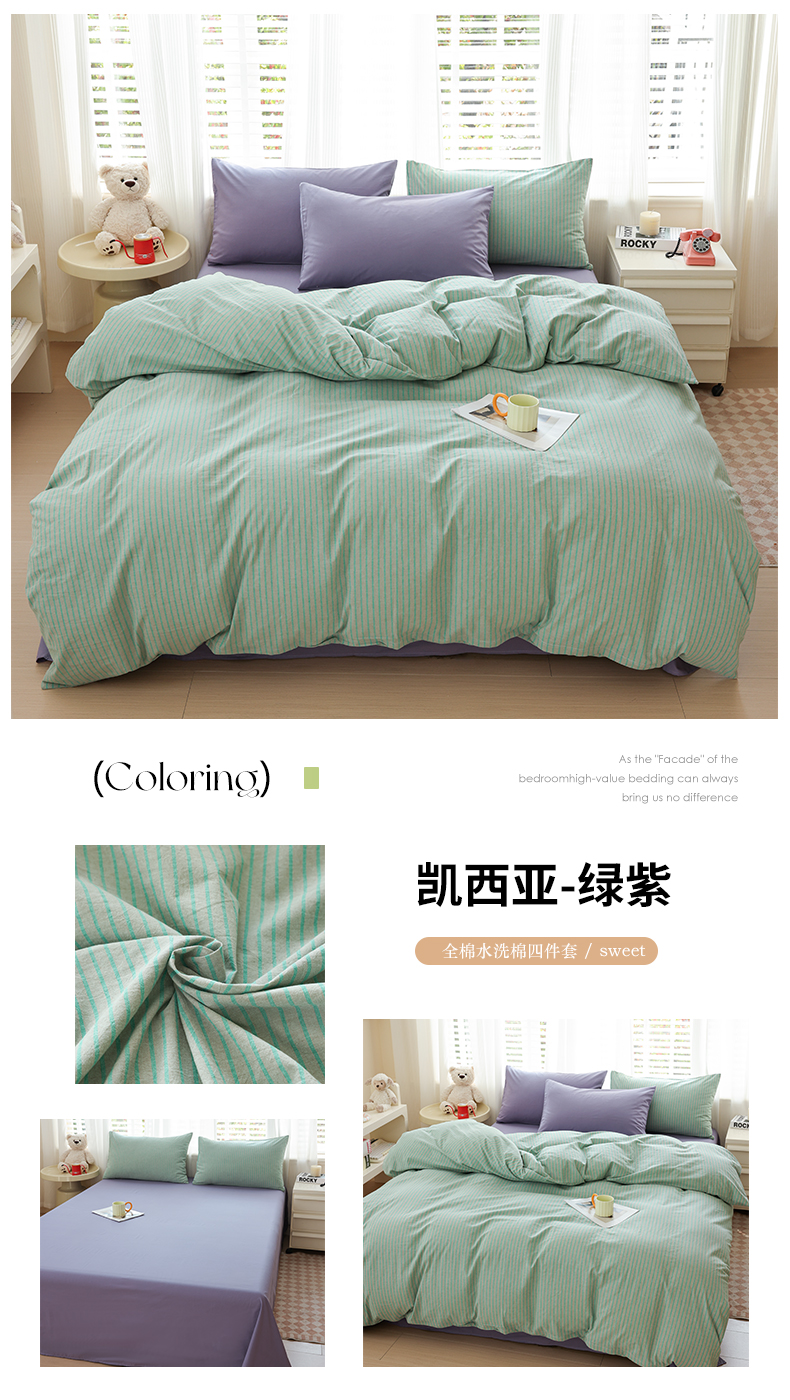 当前位置: 91家纺网 > 商品网购 > 床品套件 > 四件套 > 全棉普通四件套 > 柠萌家居 2025年最新款全棉色织水洗棉枕套混搭四件套 凯西亚-绿紫