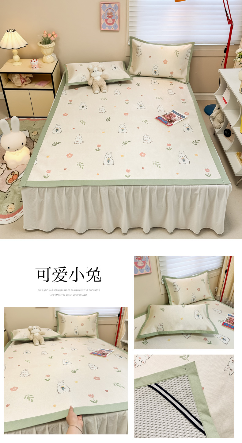 商品名称:慕尚家纺 2025新款600D小清新凉感冰丝凉席三件套 动物城