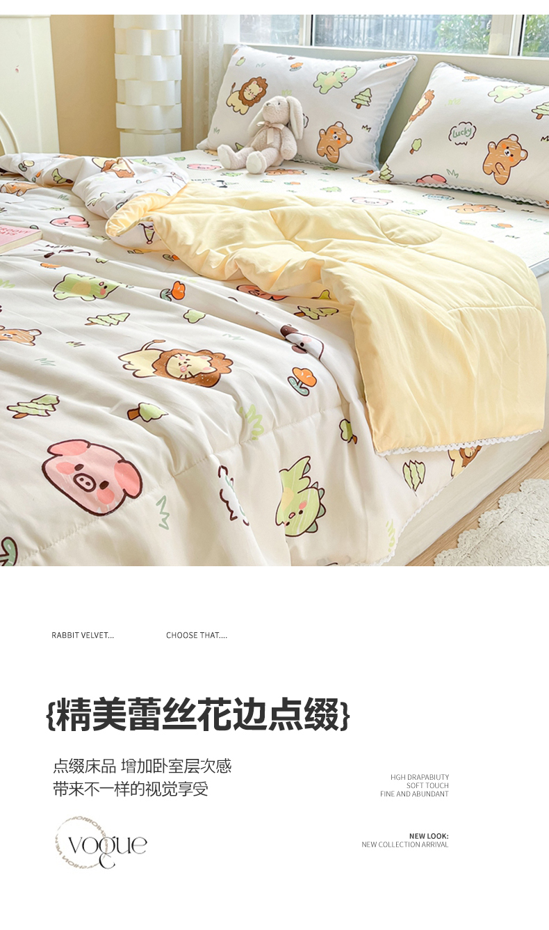 慕尚家纺 2025新款600D小清新凉感冰丝凉席三件套 动物城