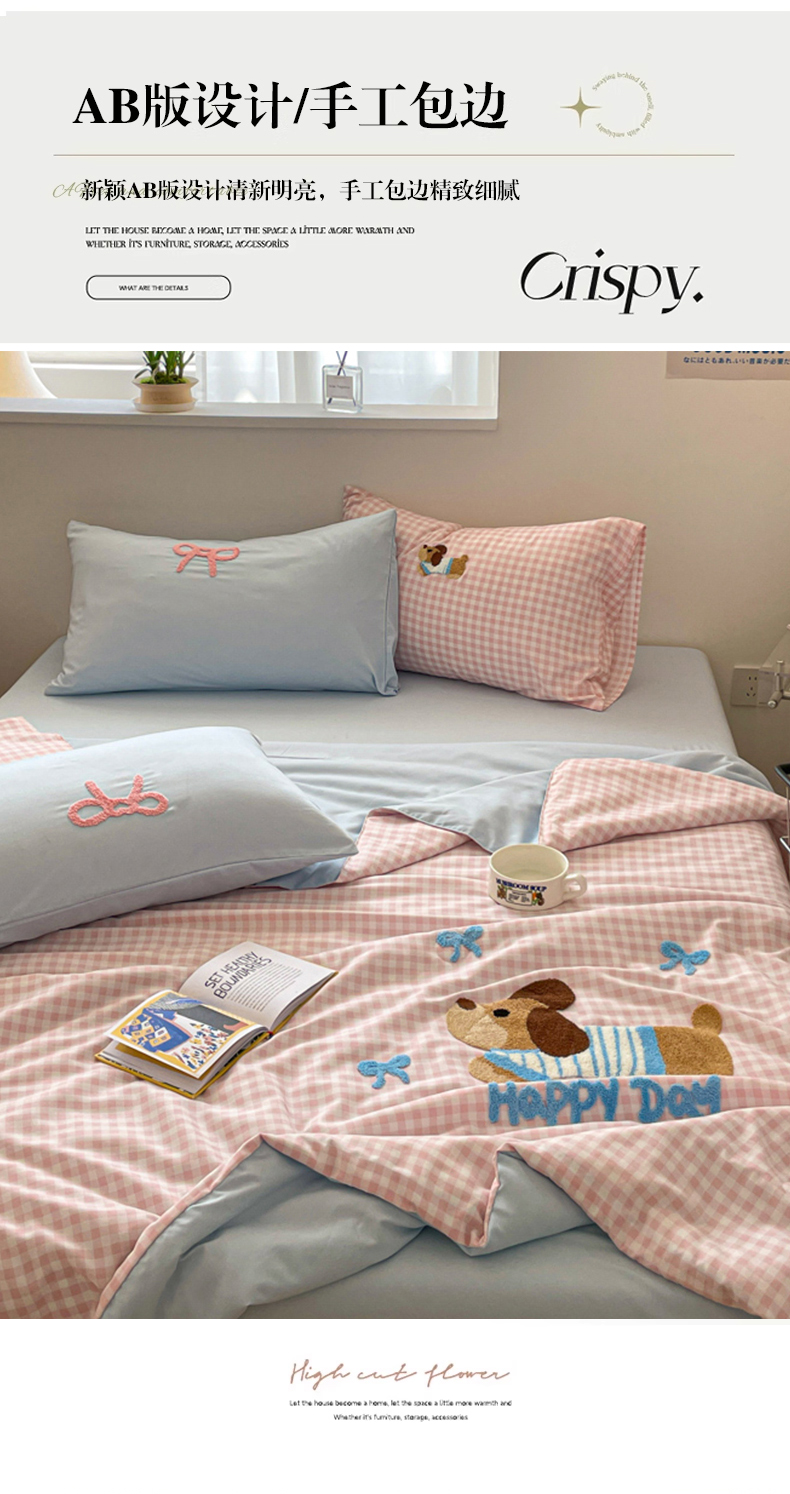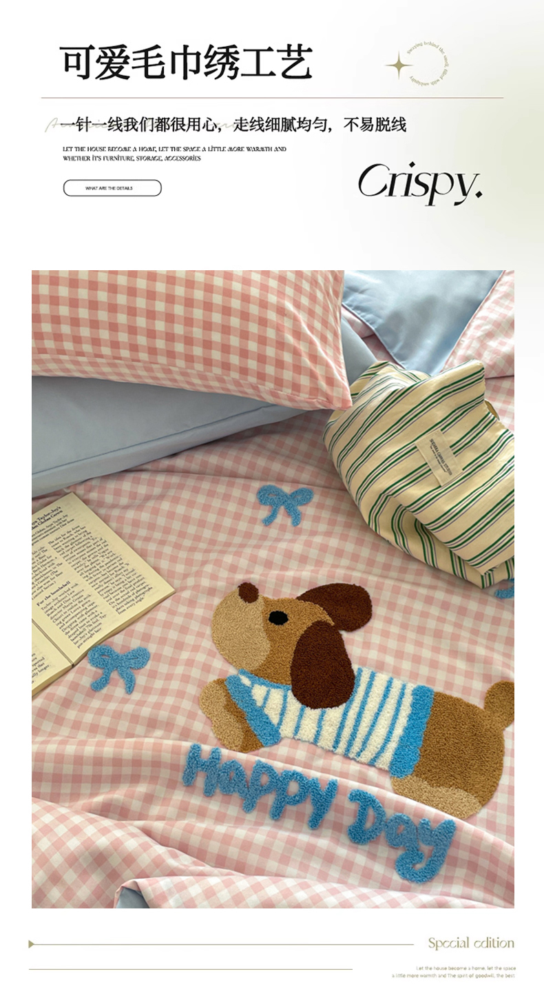 (总)红嘴企鹅 2025新款精致贴布绣牛奶绒四件套,棒棒糖-粉,Bunny兔-粉,Bunny兔-蓝,Bunny兔-紫,Cute狗-粉,Cute狗-蓝,Cute狗-紫