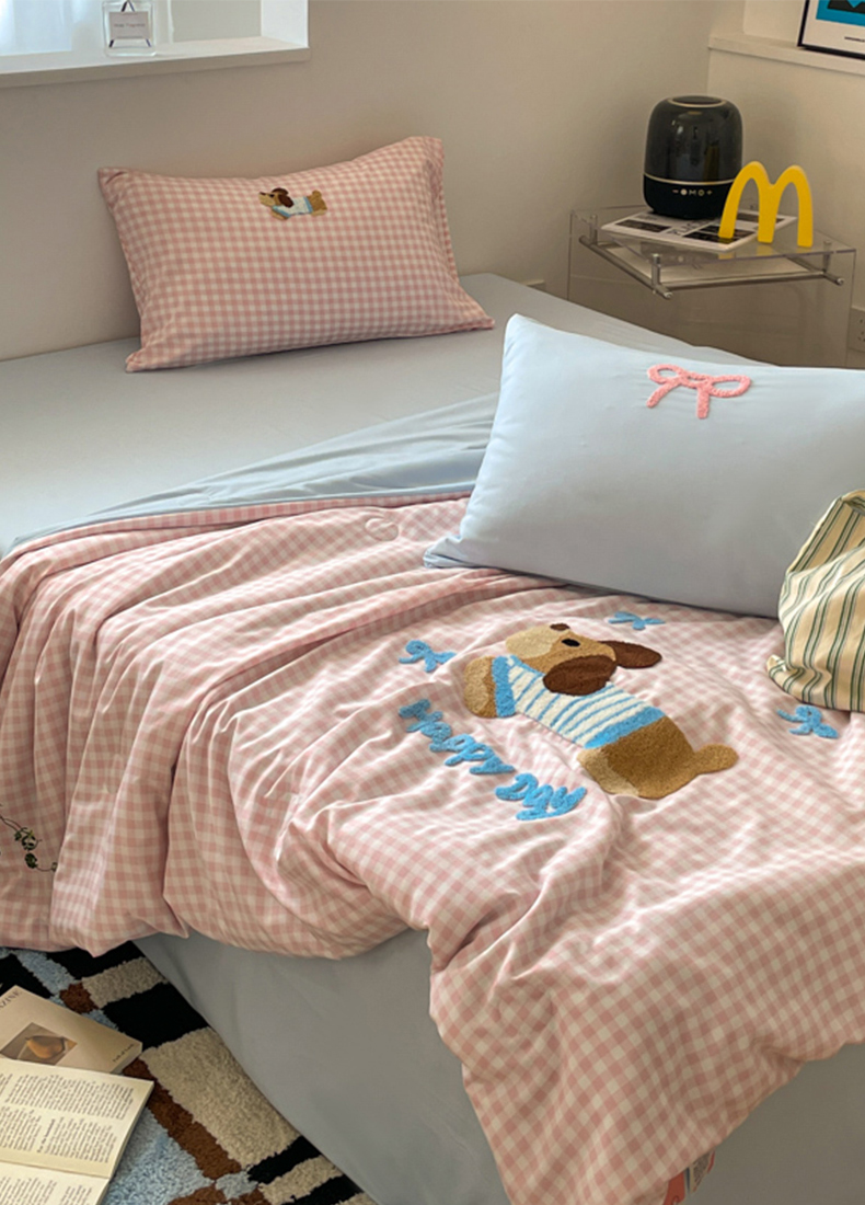 红嘴企鹅 2025新款卡通毛巾绣空调被夏被四件套 夏被-粉格狗狗