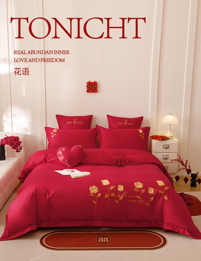 当前位置: 91家纺网 > 商品网购 > 床品套件 > 四件套 > 婚庆四件套 > 东方合美(原:皇家传奇) 2025婚庆小红书纯棉系列 花语