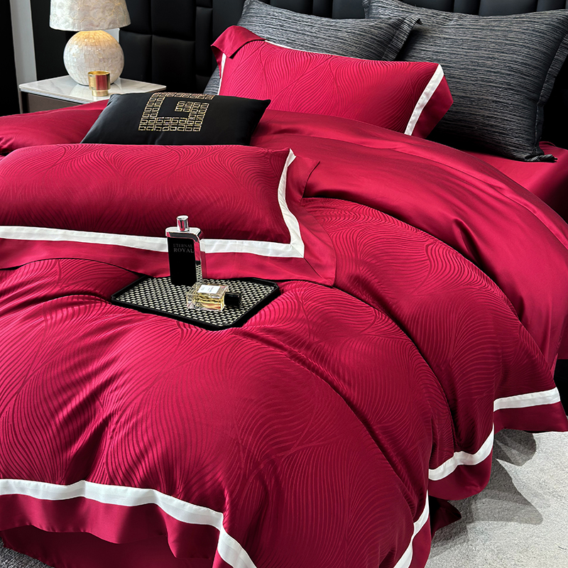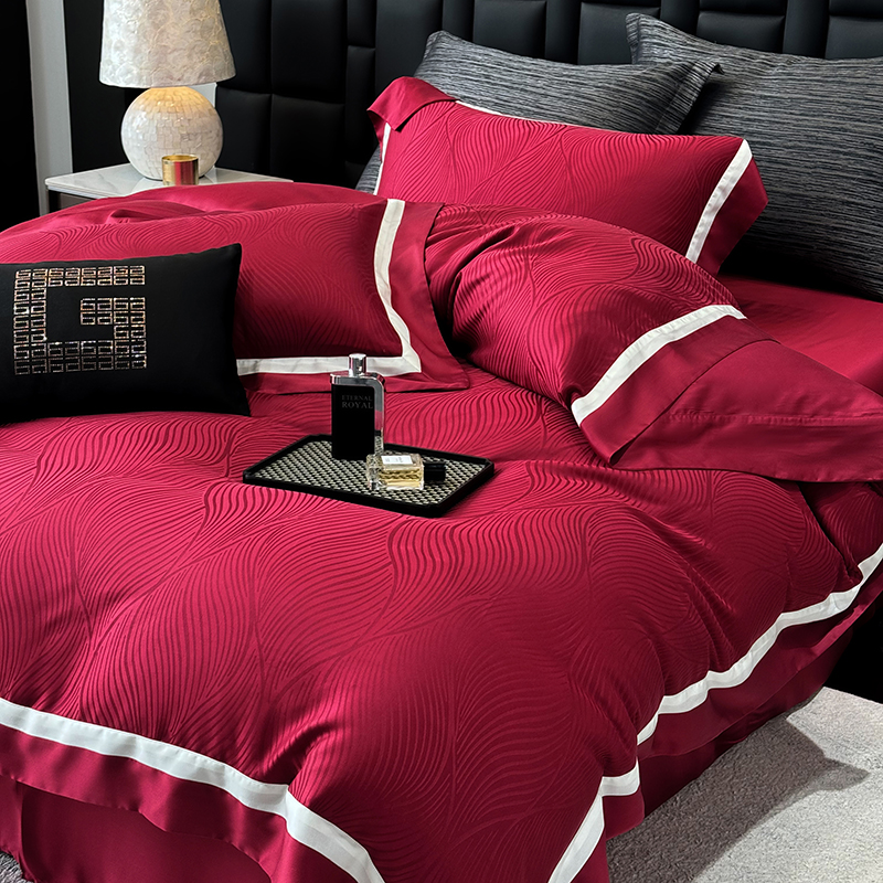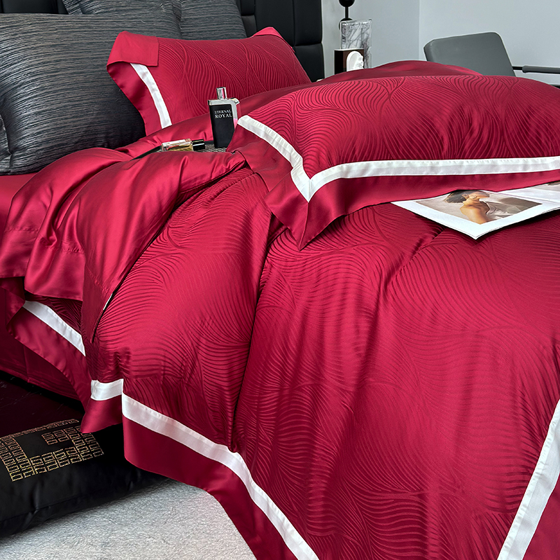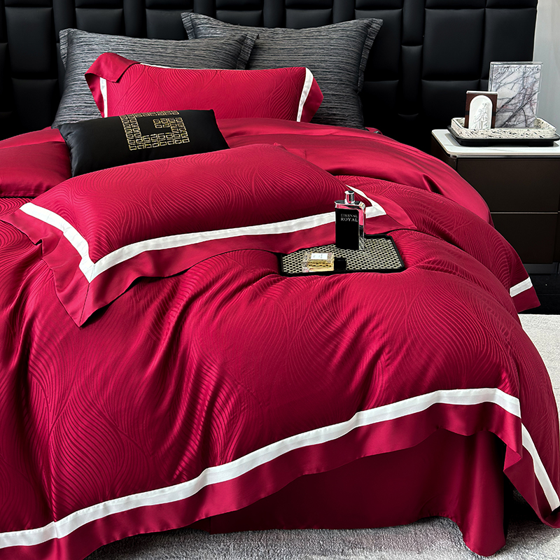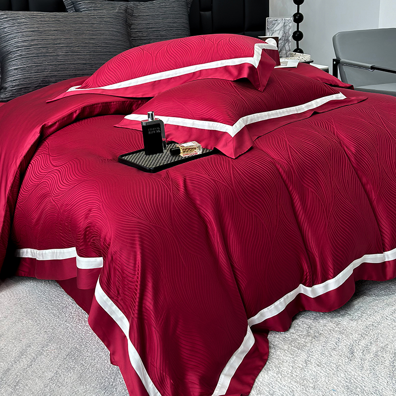 商品名称:若未家居 LOVEWE HOUSE 2025新款天丝提花套件撞色轻奢风四件套-天丝布拉格 天丝布拉格 贵族红