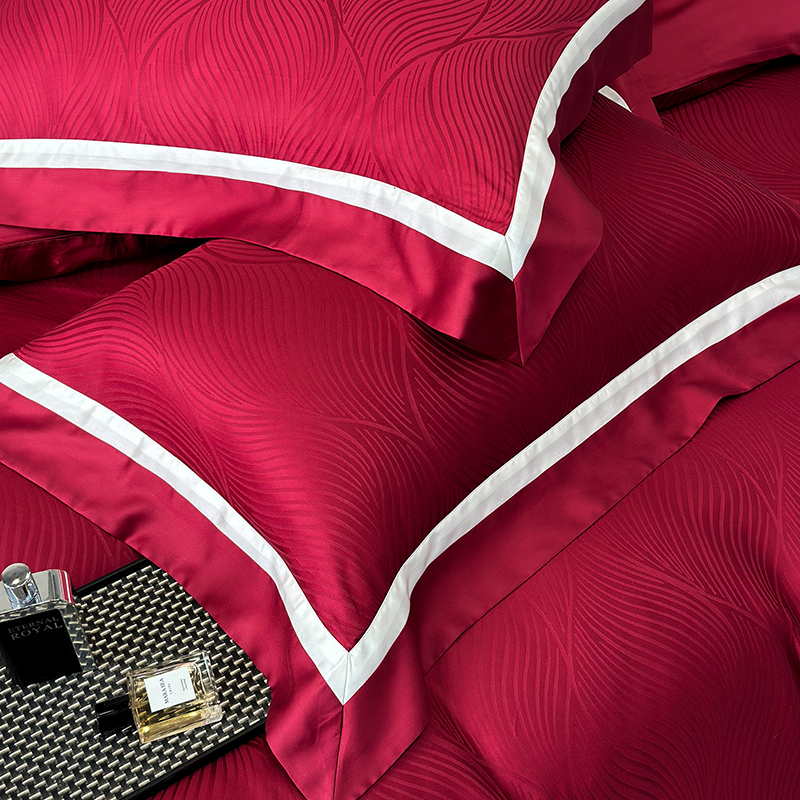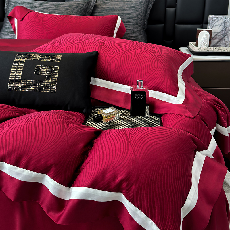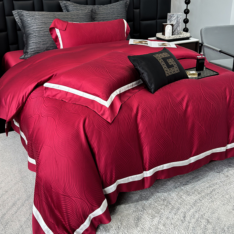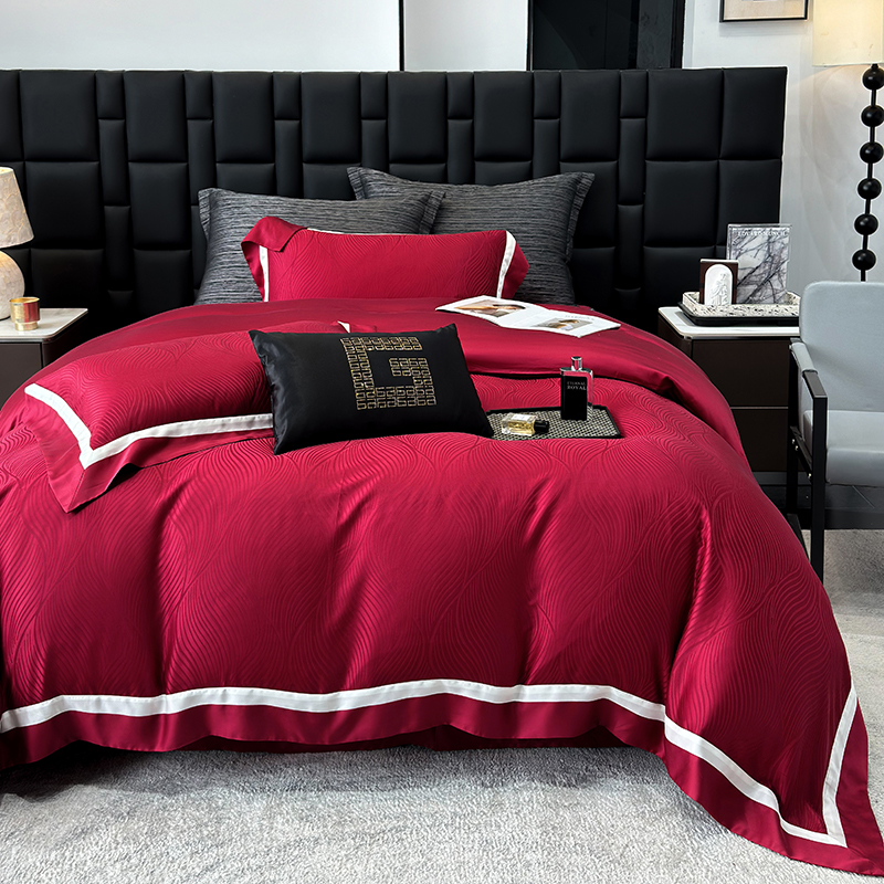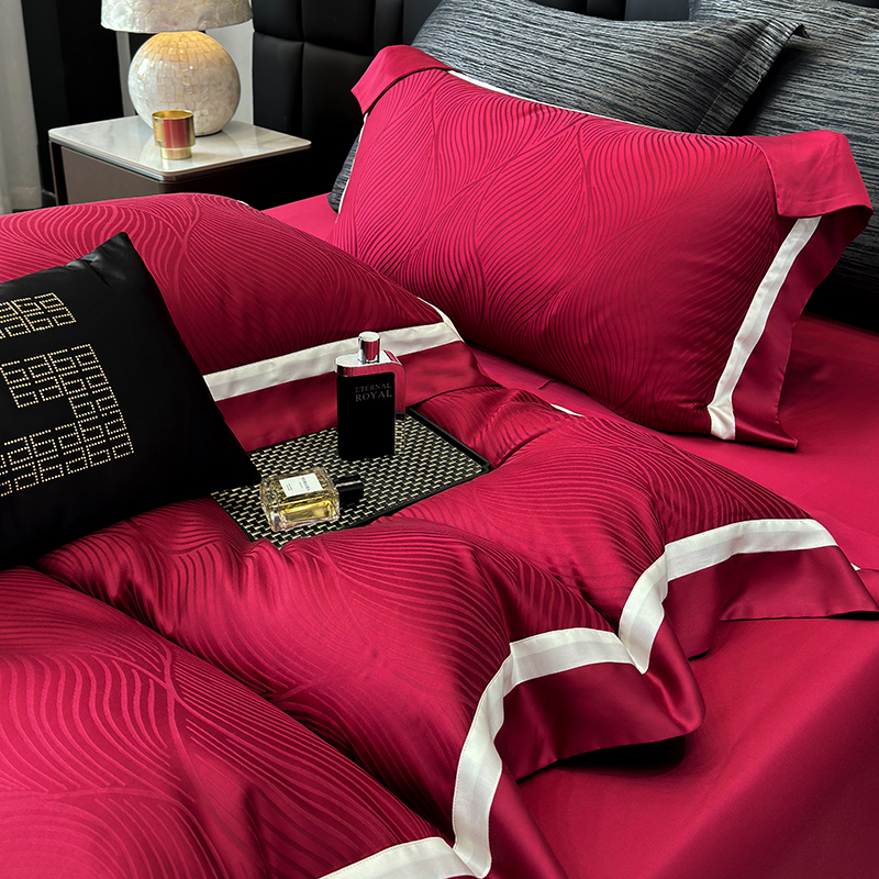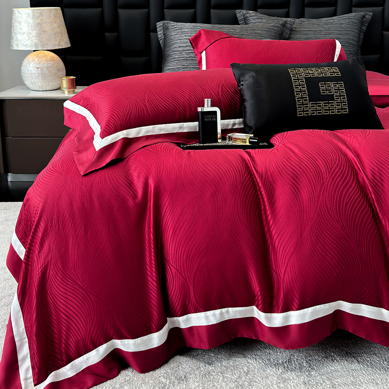商品名称:若未家居 LOVEWE HOUSE 2025新款天丝提花套件撞色轻奢风四件套-天丝布拉格 天丝布拉格 贵族红