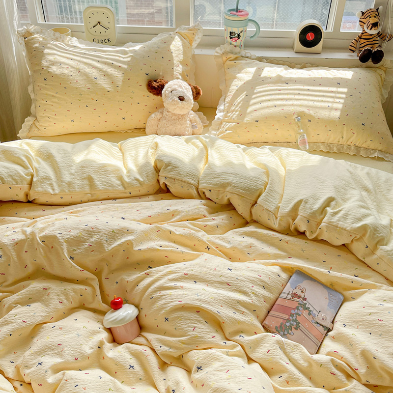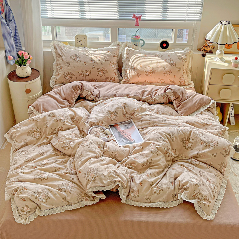 (总)仟网汇 2025新款云感皱皱双层纱全棉花边四件套