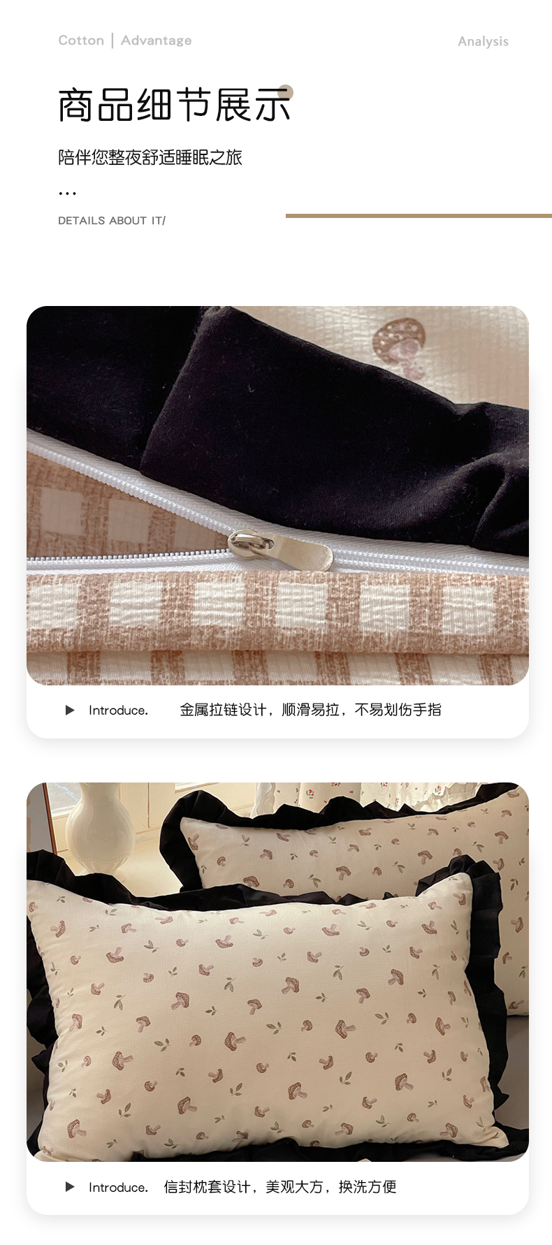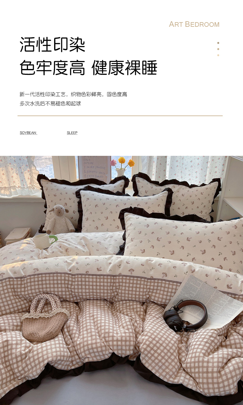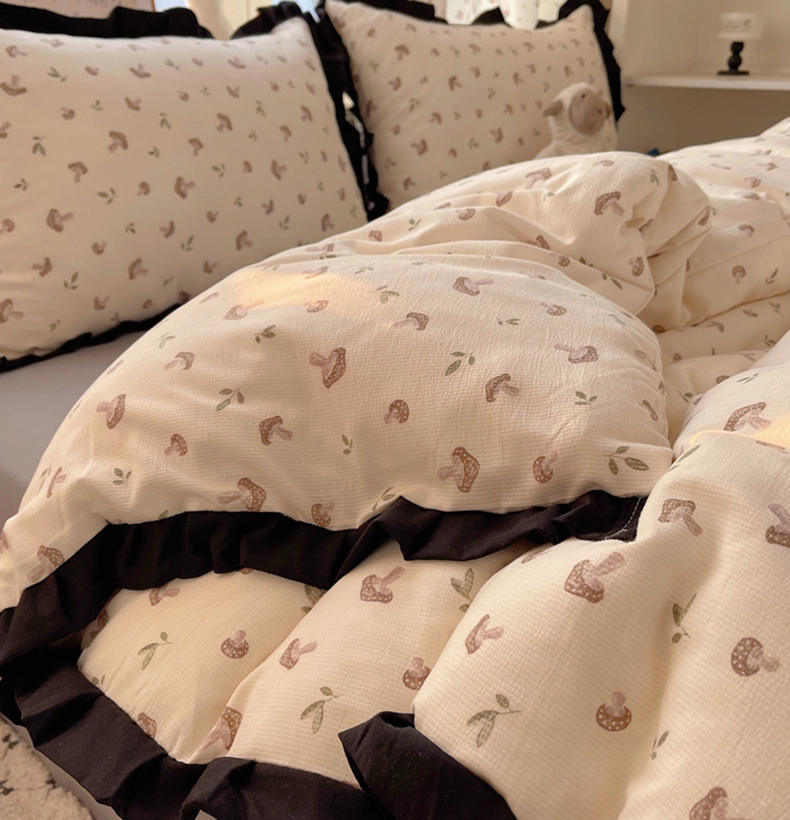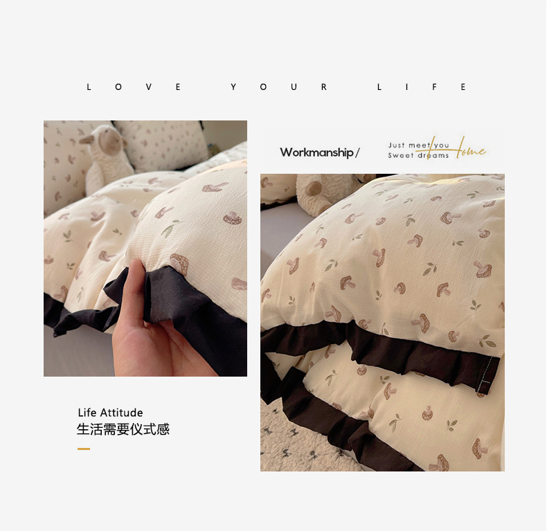 商品名称:红嘴企鹅 2025新款双层纱水洗棉赫本风四件套 赫本风-花蘑菇