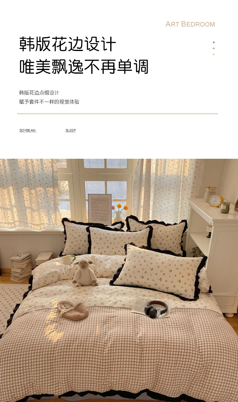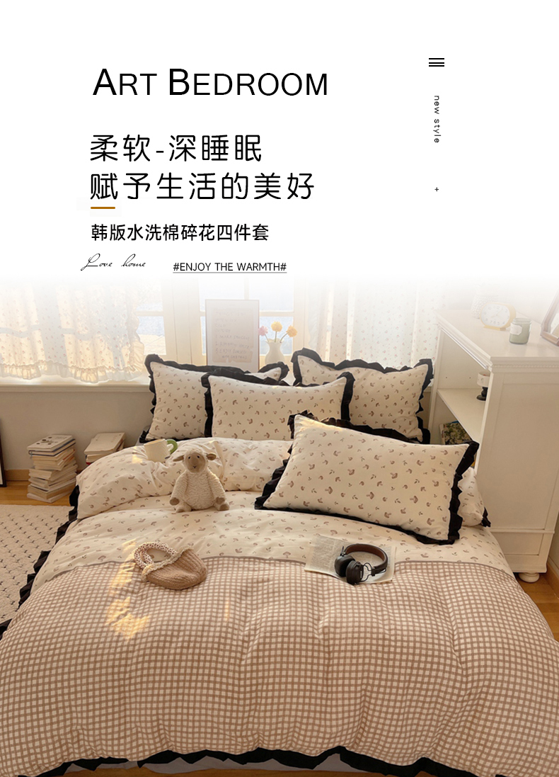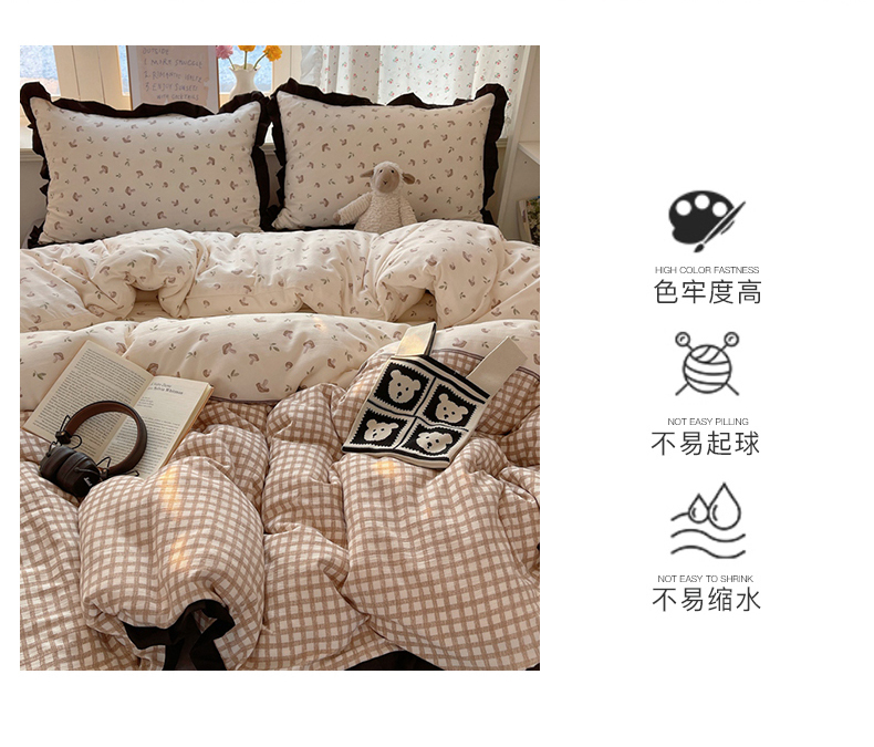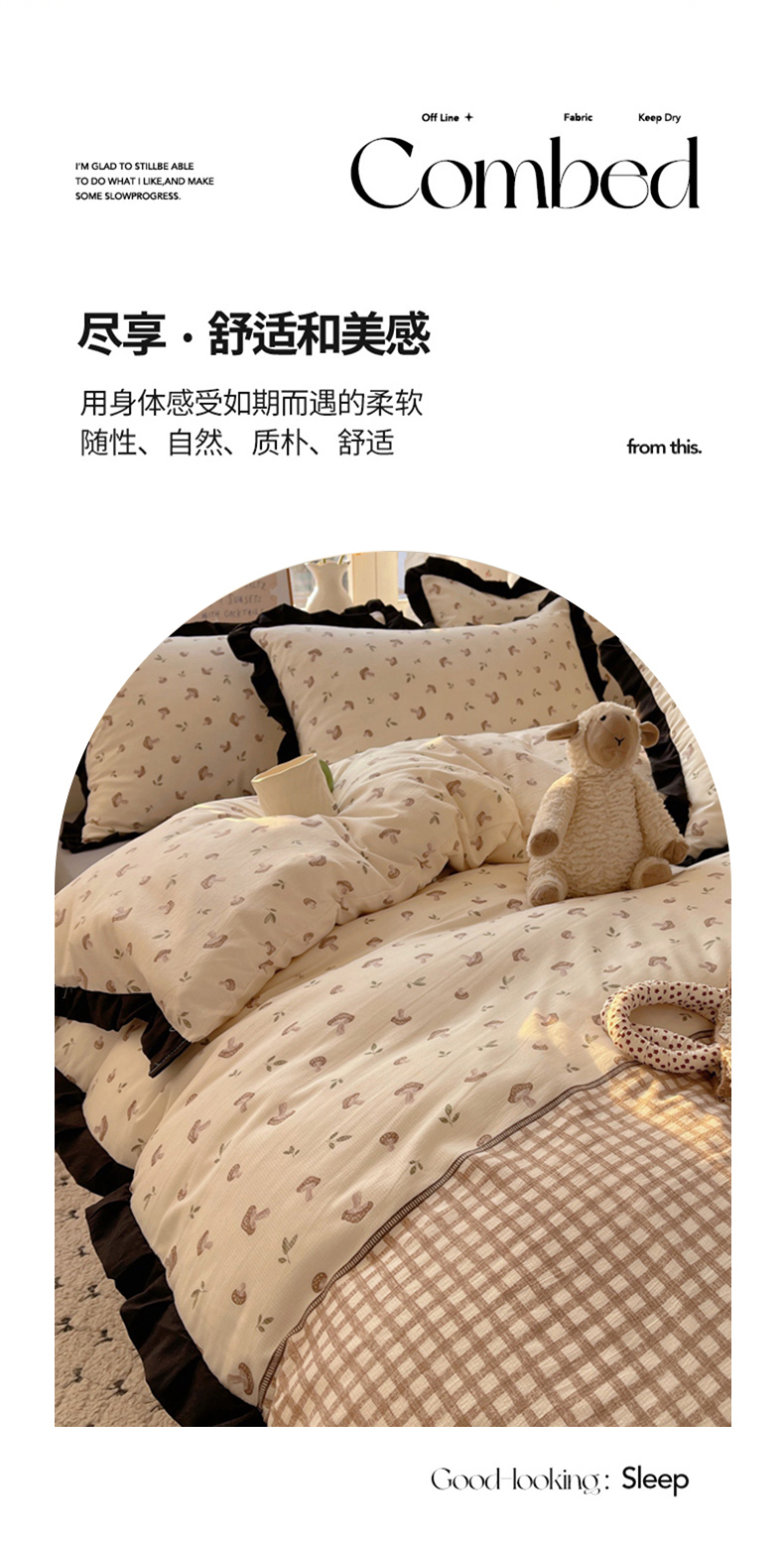 商品名称:红嘴企鹅 2025新款双层纱水洗棉赫本风四件套 赫本风-花蘑菇