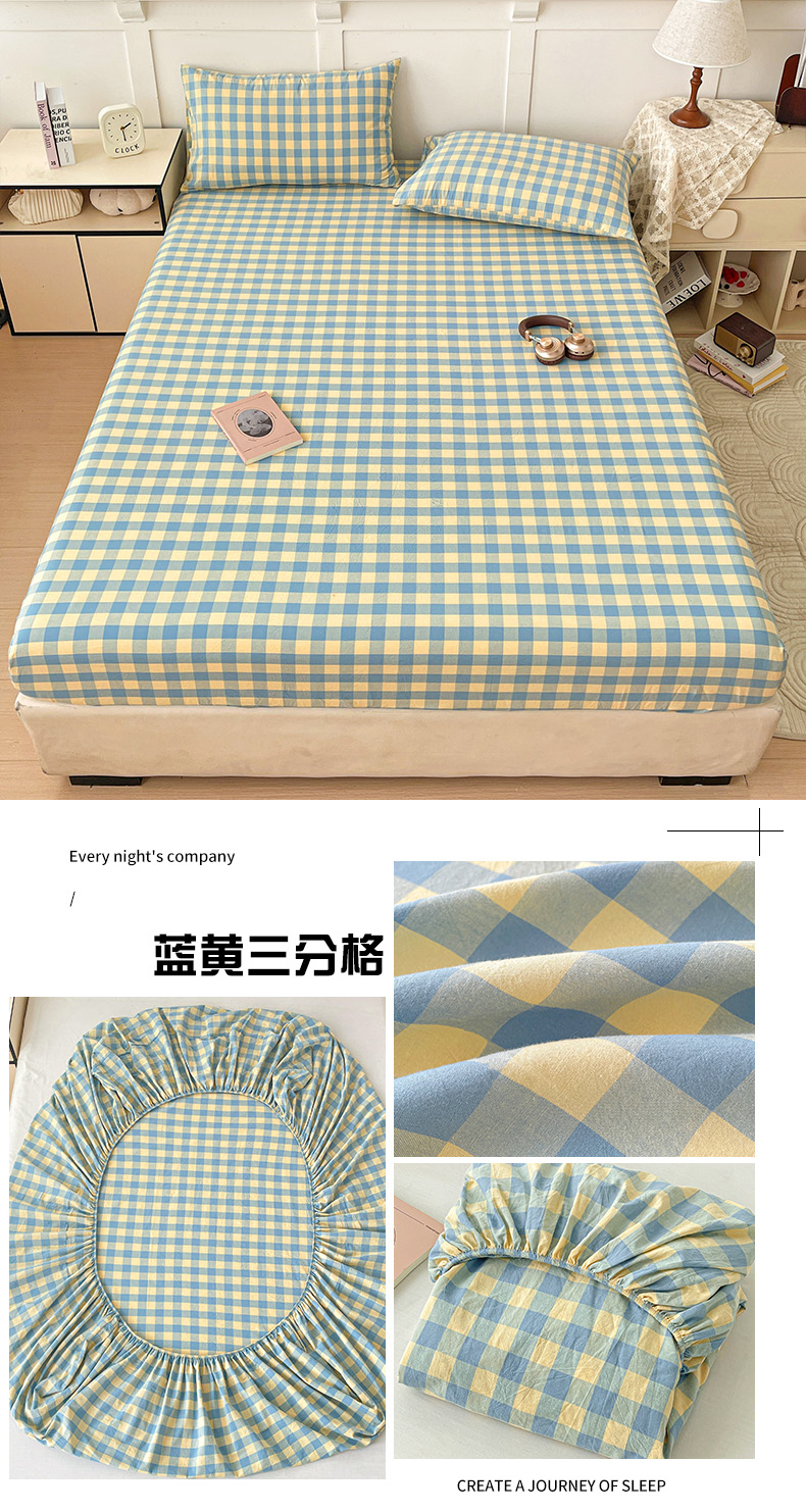 商品名称:2025新款全棉水洗棉套件-单床笠 蓝黄三分格