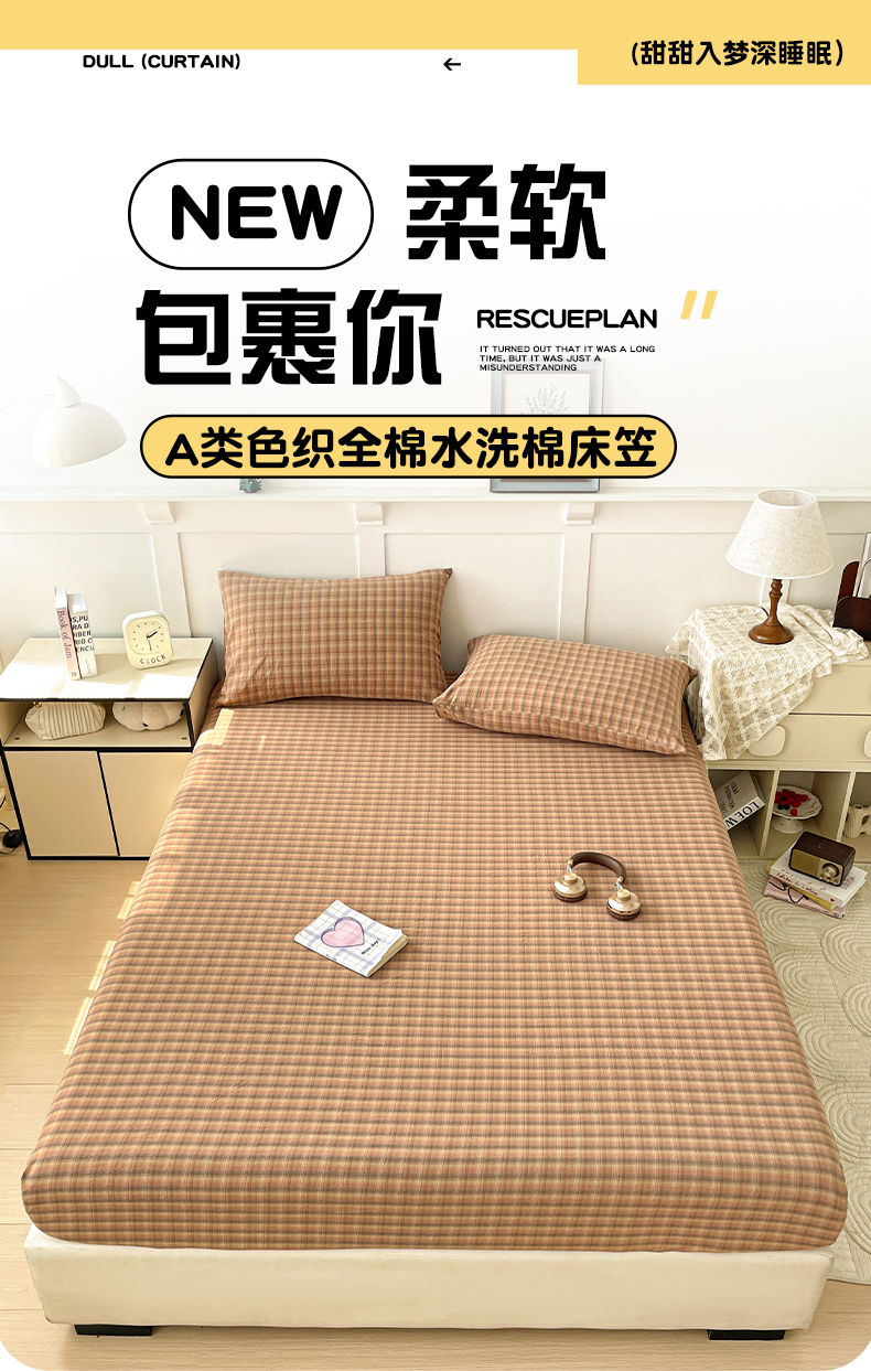 商品名称:2025新款全棉水洗棉套件-单床笠 云岫粉咖