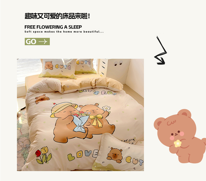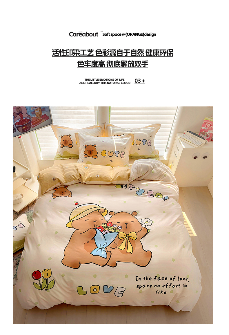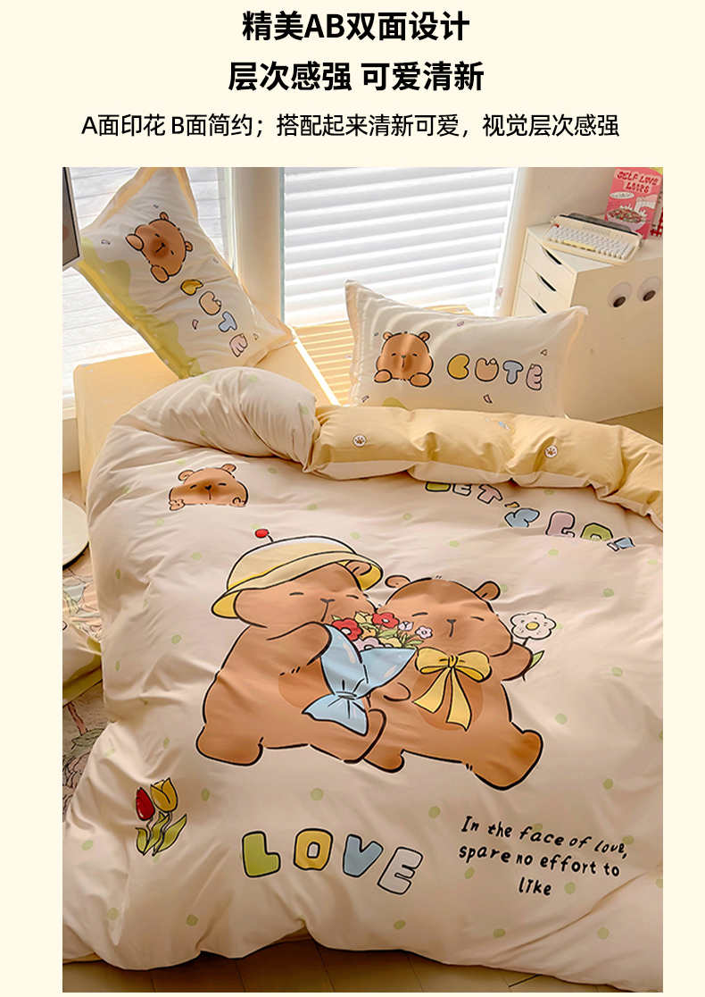 当前位置: 91家纺网 > 商品网购 > 床品套件 > 四件套 > 全棉普通四件套 > 2025新款原创设计卡皮巴拉全棉四件套-有作品登记证书 波点巴拉