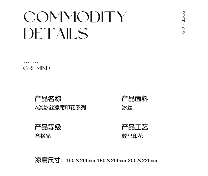 商品名称:金盛纺 2025新款A类数码印花冰丝席-床席款 风铃