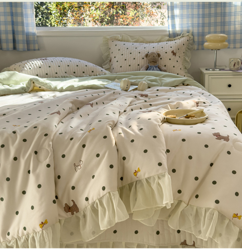 当前位置: 91家纺网 > 商品网购 > 床品套件 > 四件套 > 其它四件套 > 2025新款印花夏被四件套 领结小狗