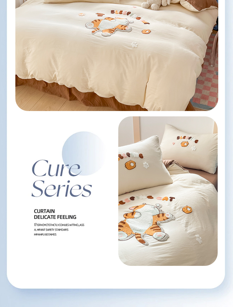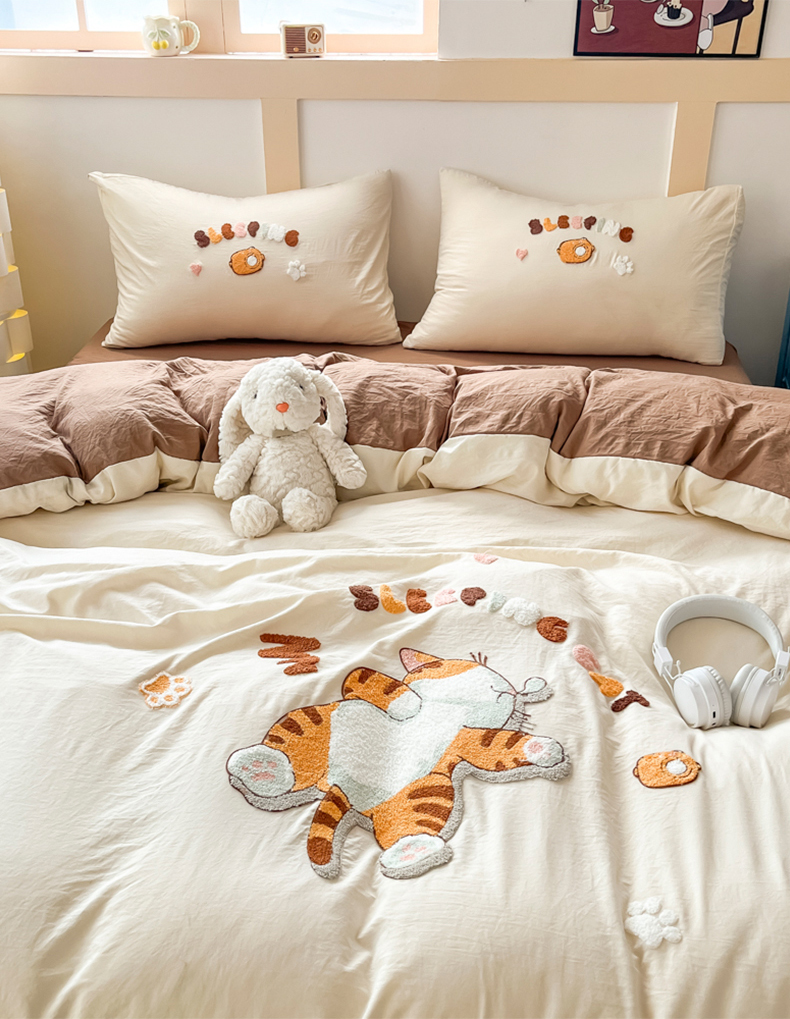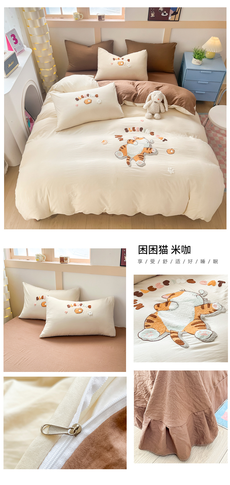 当前位置: 91家纺网 > 商品网购 > 床品套件 > 四件套 > 其它四件套 > 青螺家纺 2025春夏新款云朵棉毛巾绣卡通可爱三件套四件套学生套件 困困猫 米咖