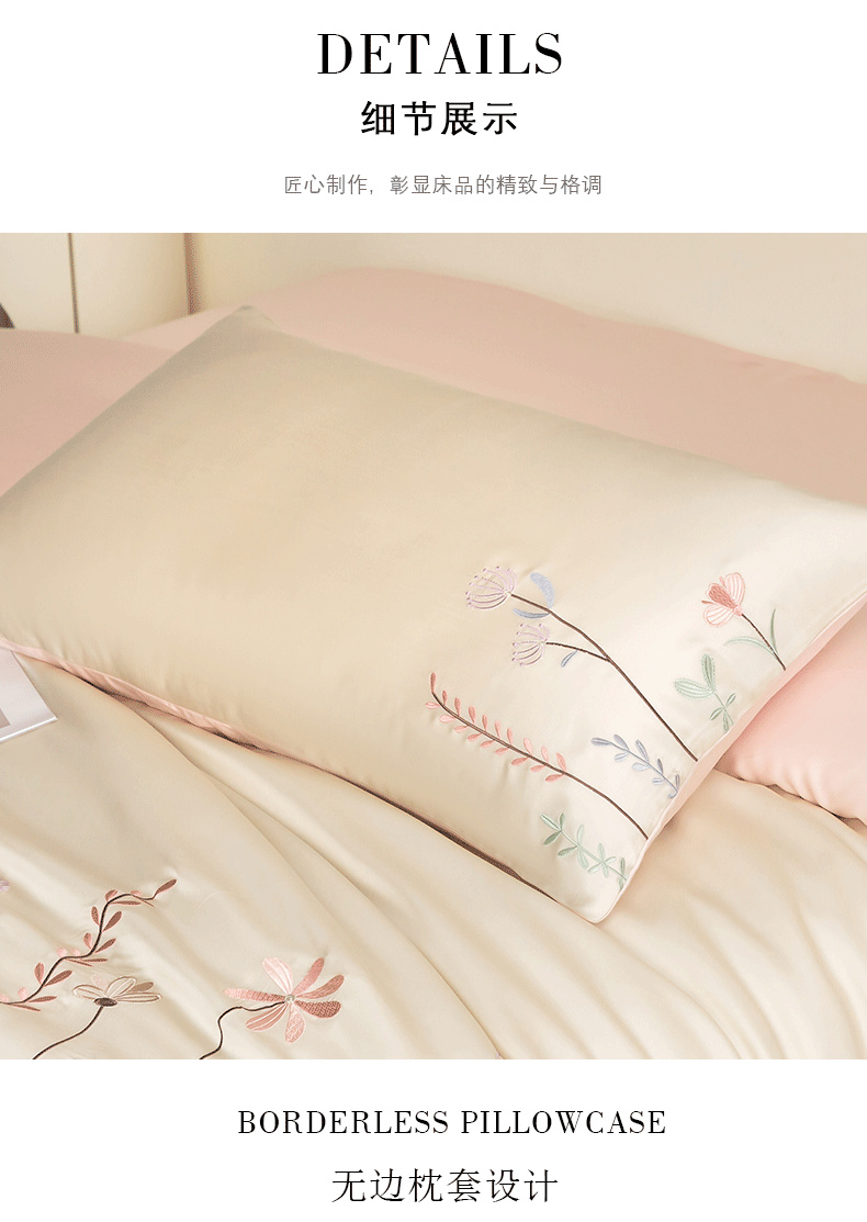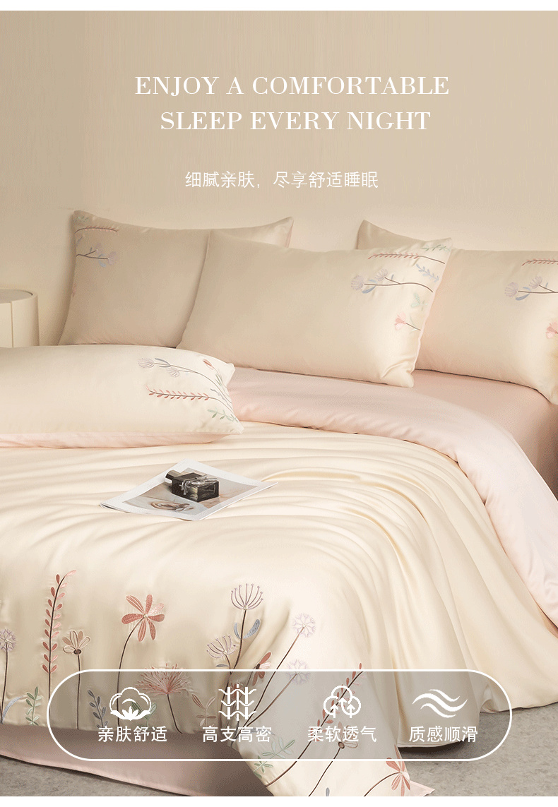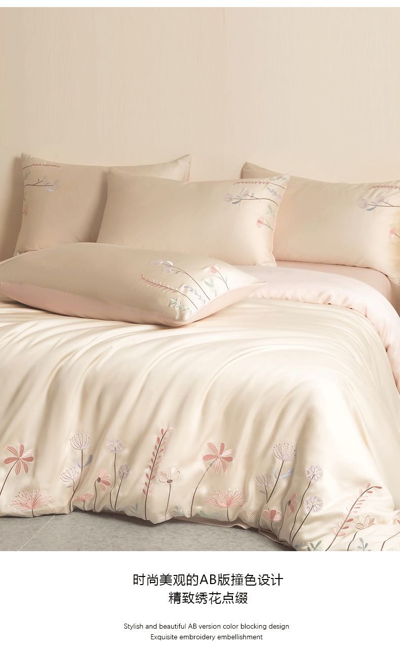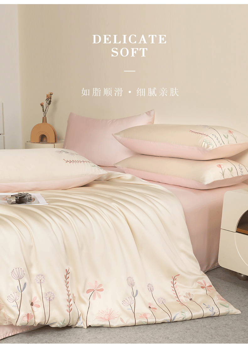 商品名称:618家纺 2025新款60S100支进口兰精天丝四件套-初夏 天丝初夏粉玉