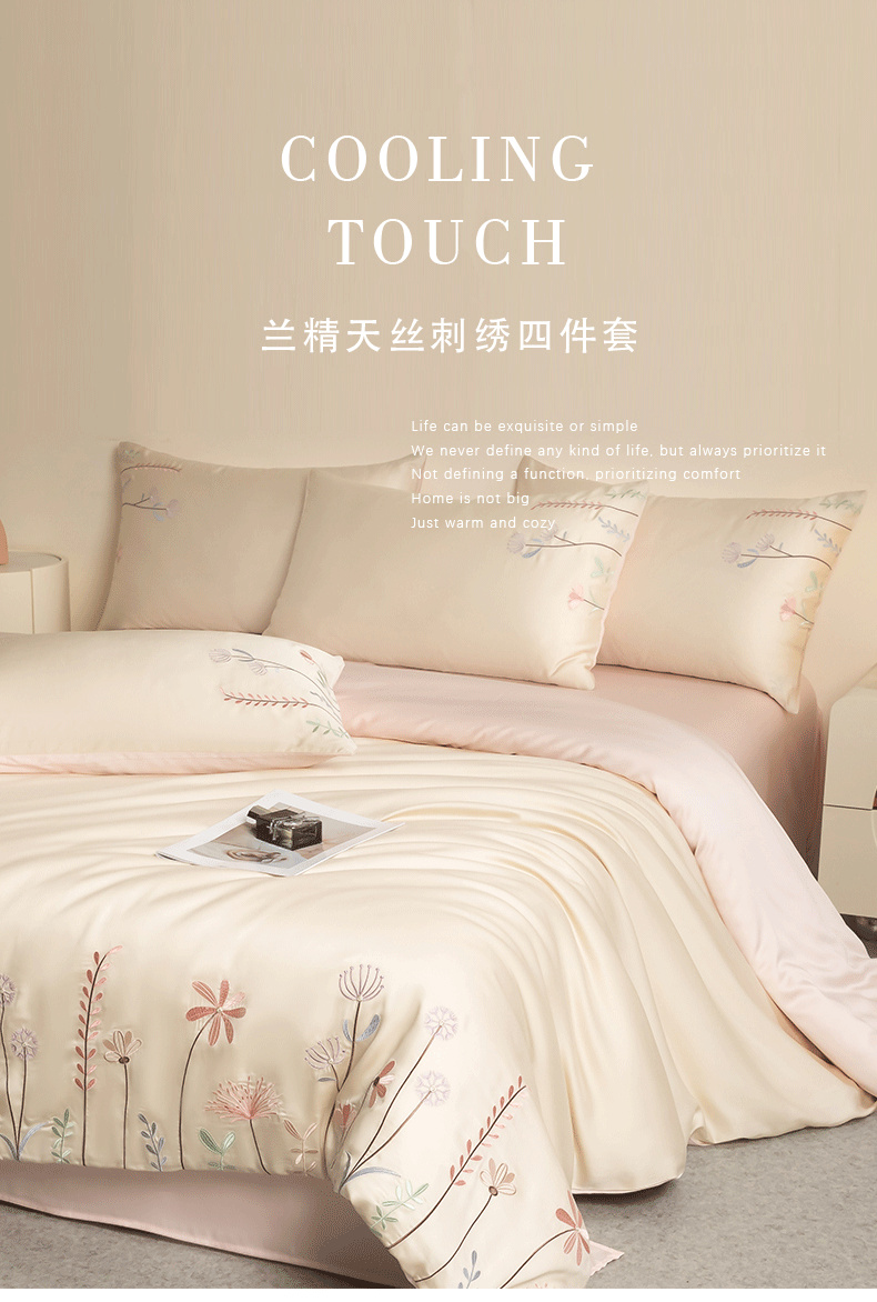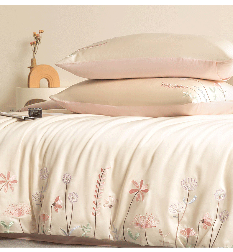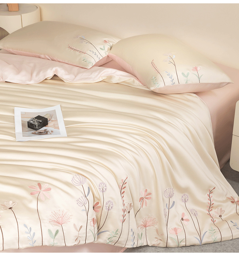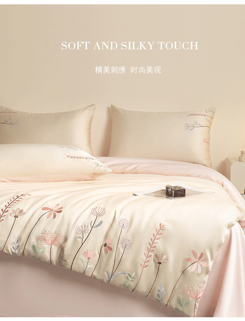 商品名称:618家纺 2025新款60S100支进口兰精天丝四件套-初夏 天丝初夏粉玉
