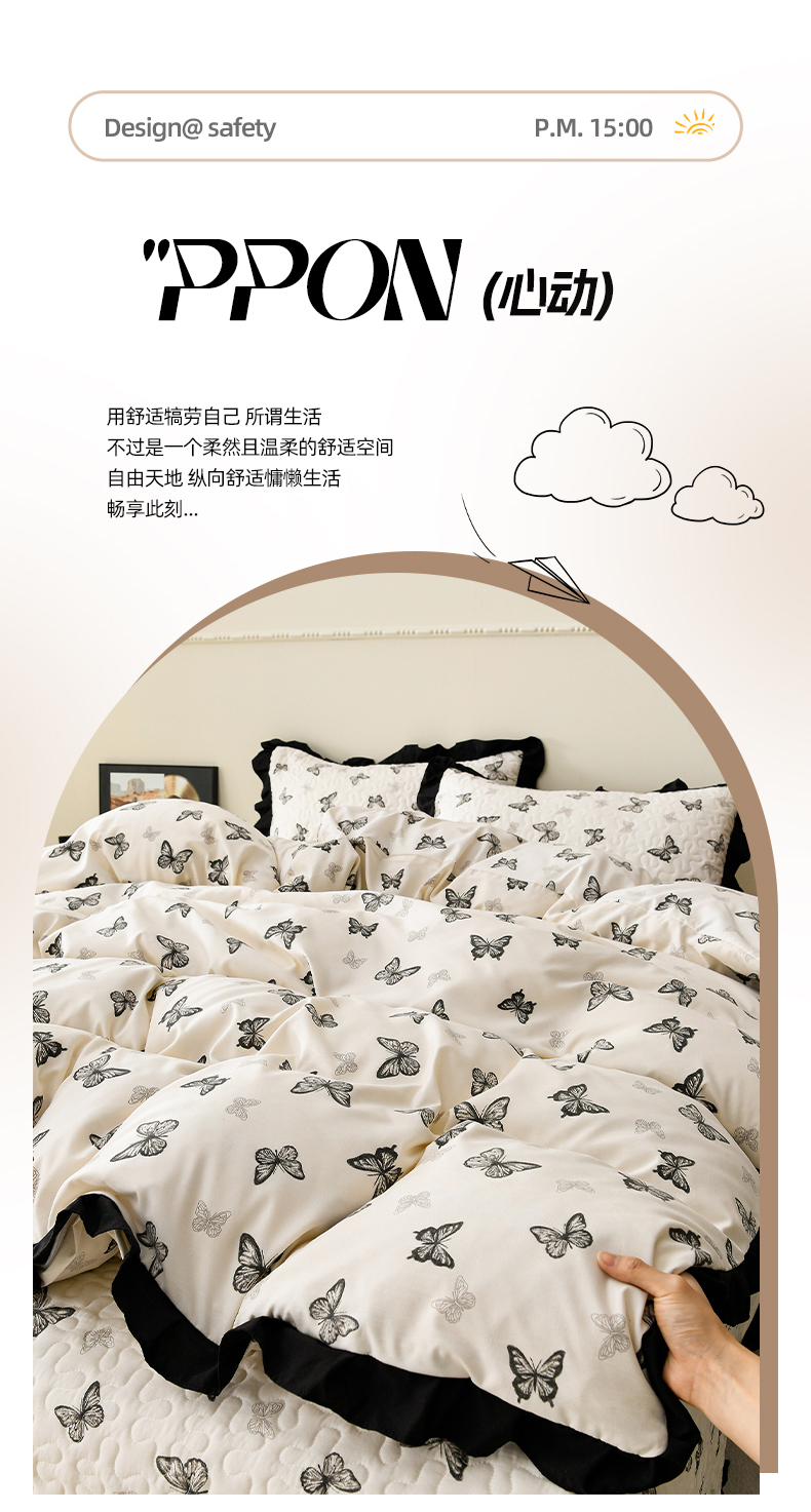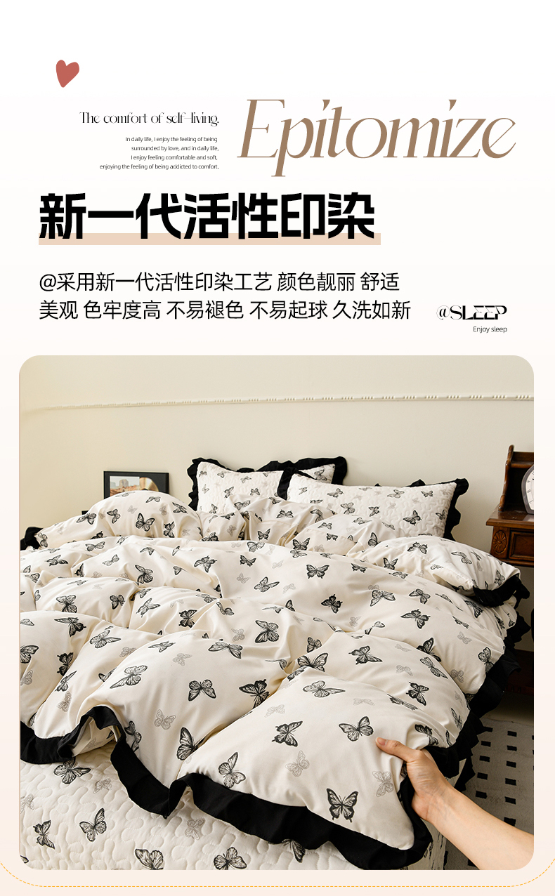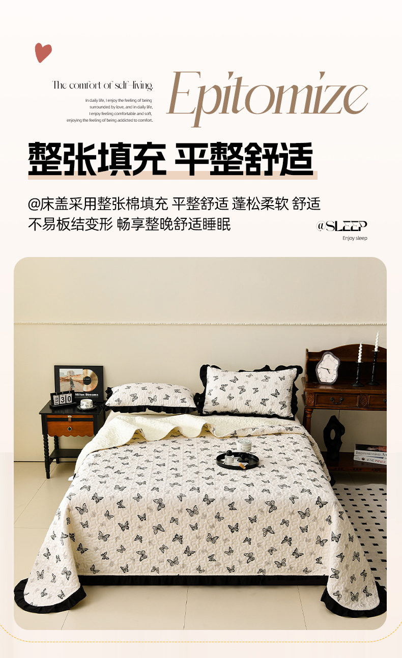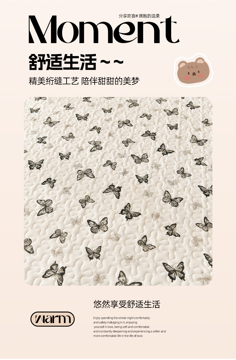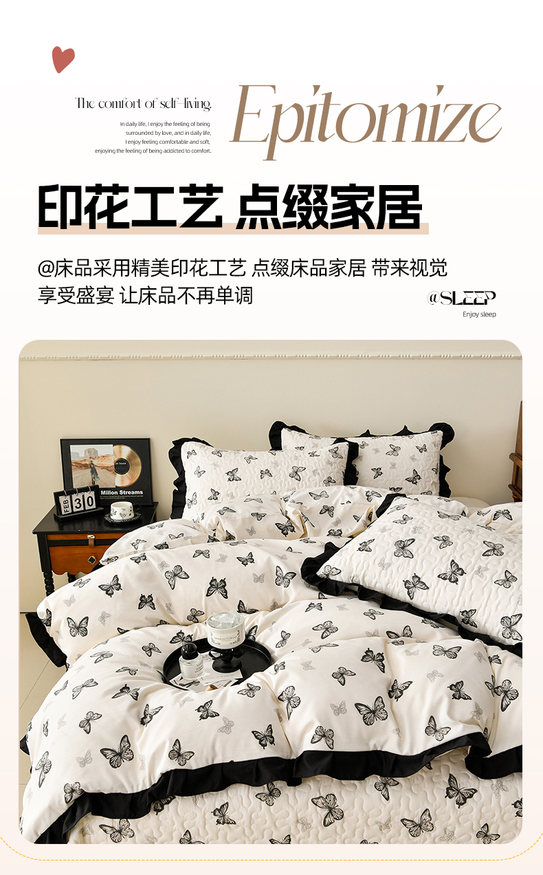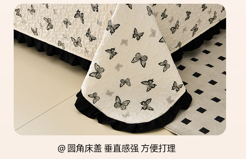 商品名称:佳品居 2025新款A类水洗棉夹棉夏被床盖四件套-赫本风 赫本风-蝴蝶印记
