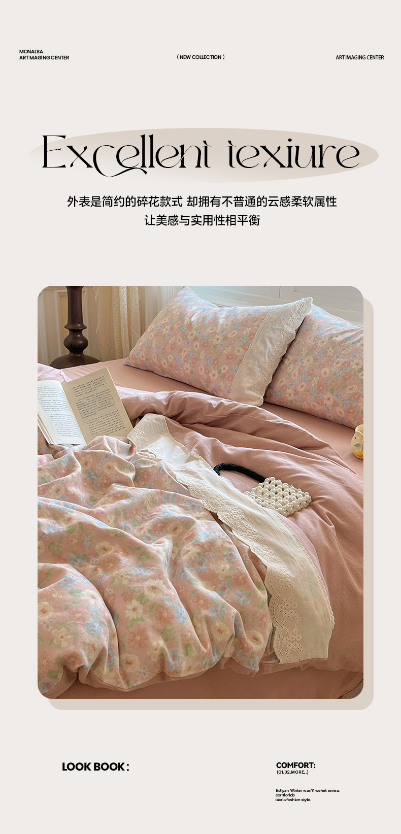 (总)首尔家纺 2025新款牛奶绒法式数码印花花边款四件套,绒-玉芙蓉琥珀色,绒-薄雾玫瑰,绒-流金岁月,绒-玉芙蓉烟青