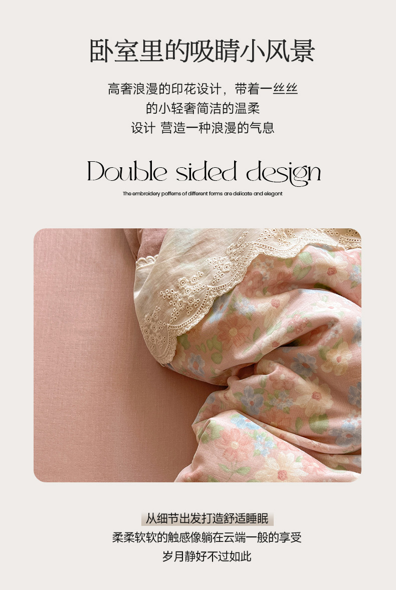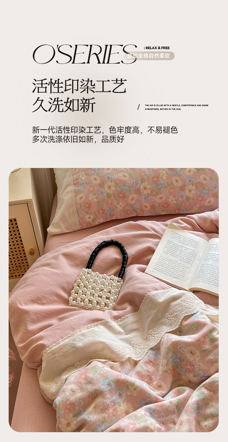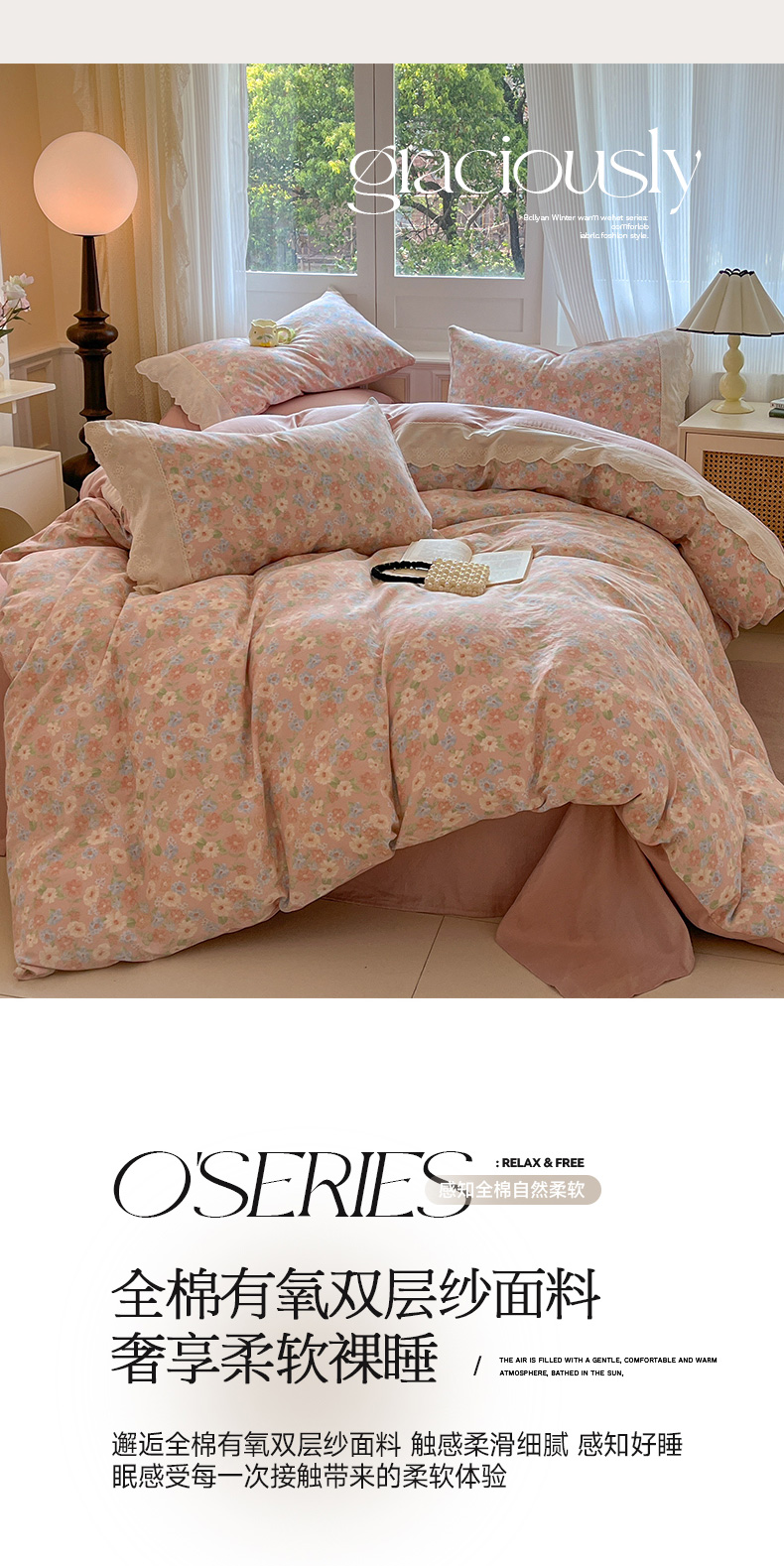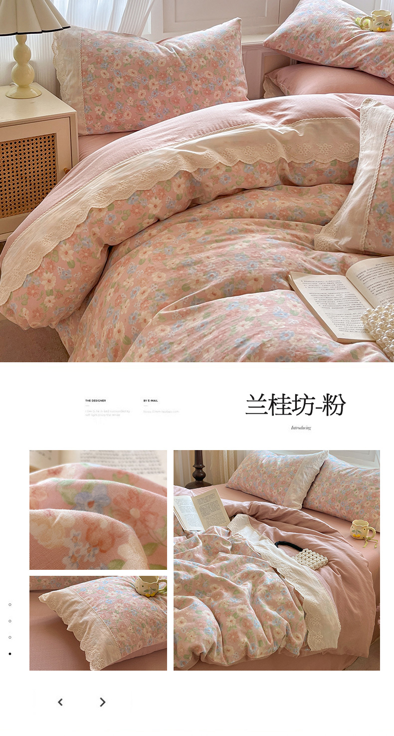 首尔2025新款全棉双层纱小碎花花边款四件套 兰桂坊-粉
