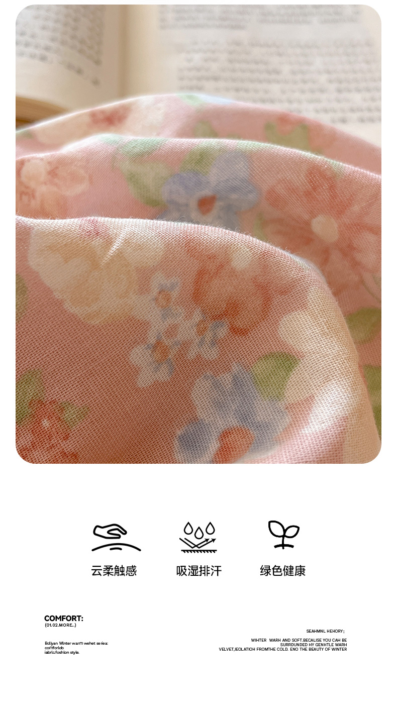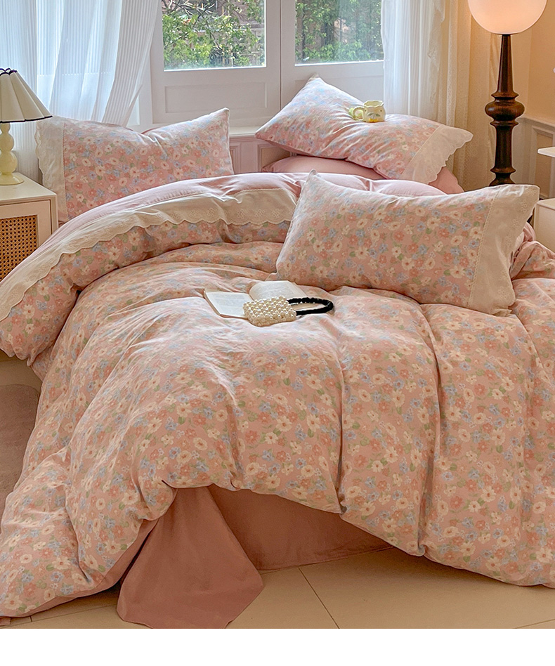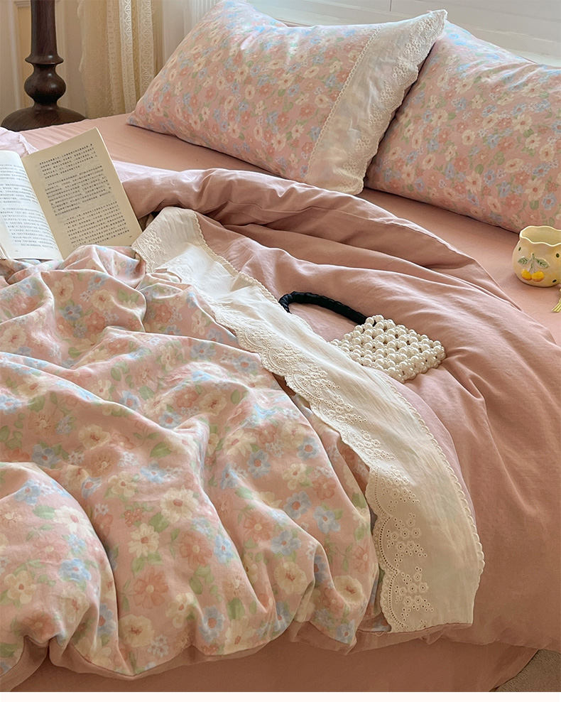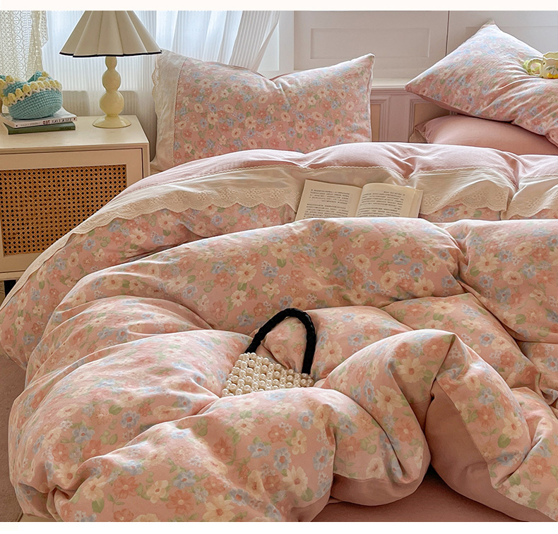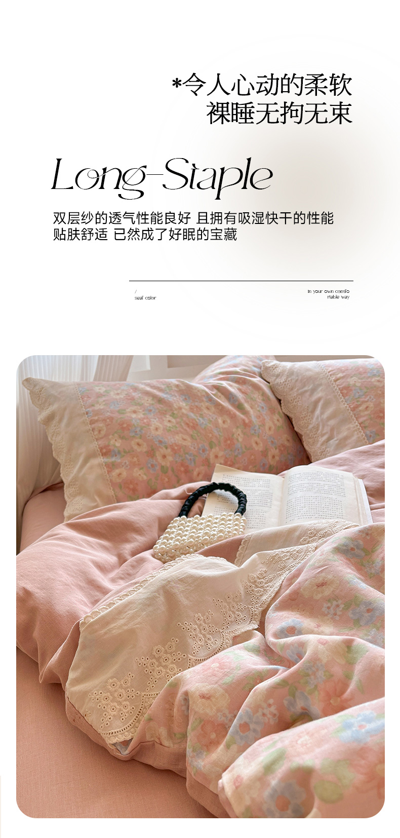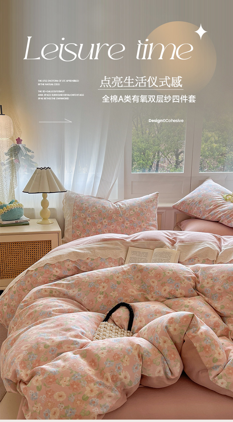 首尔2025新款全棉双层纱小碎花花边款四件套 兰桂坊-粉