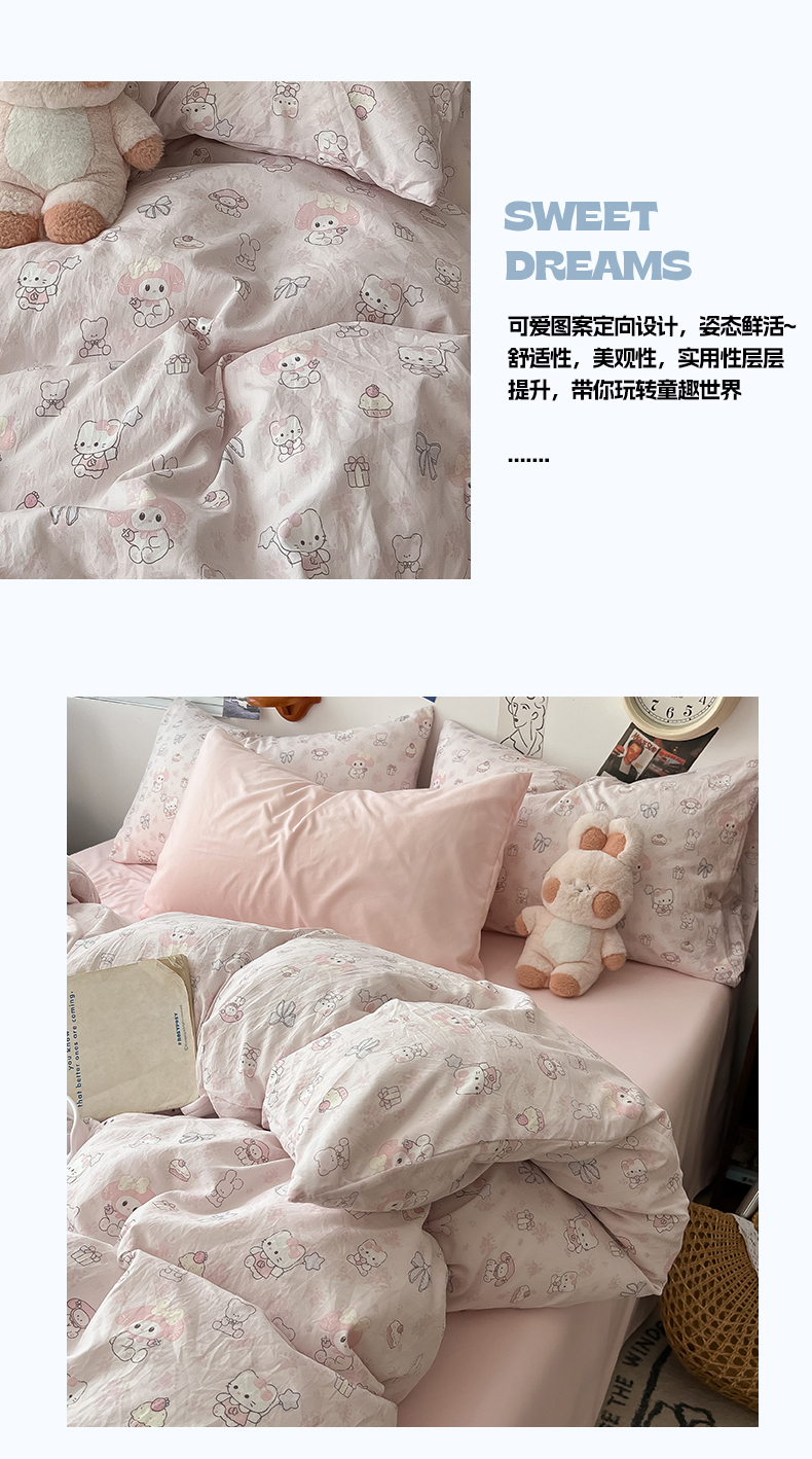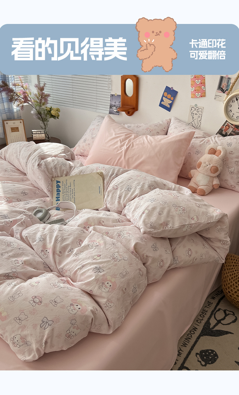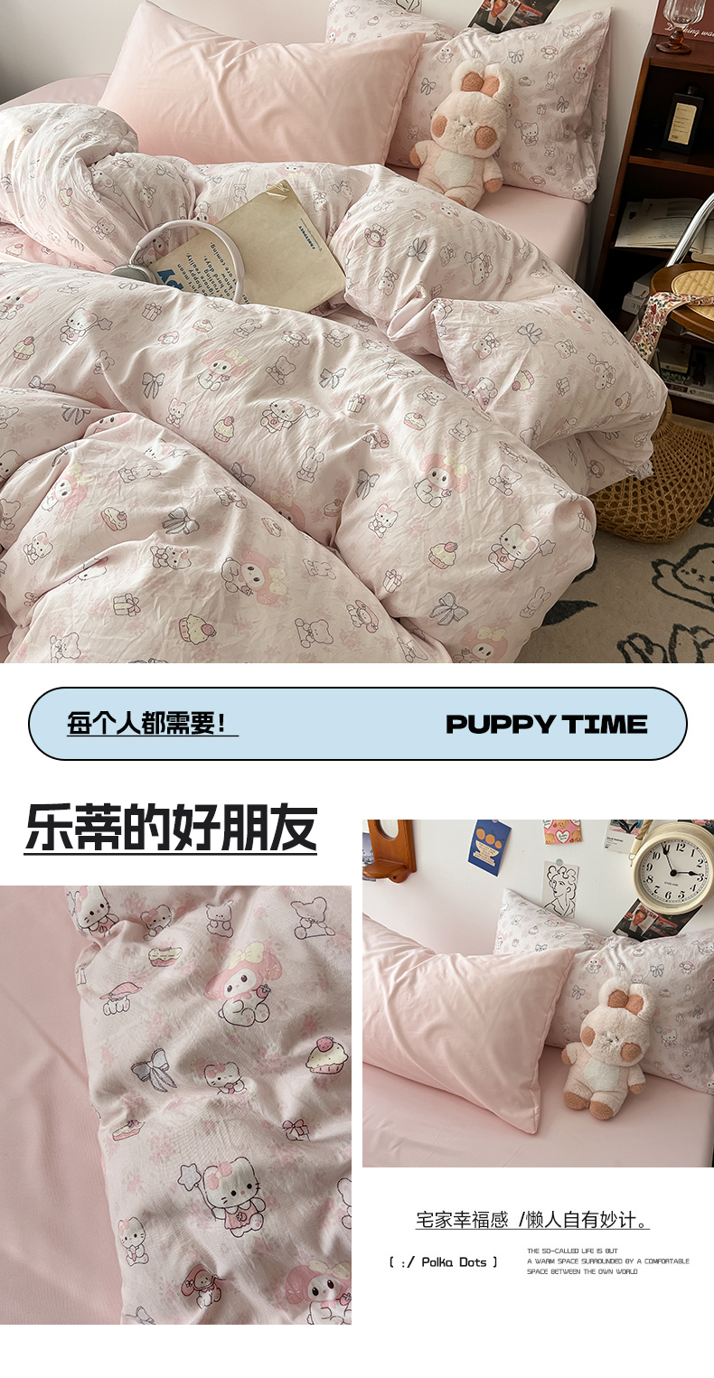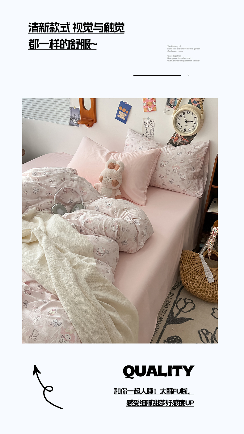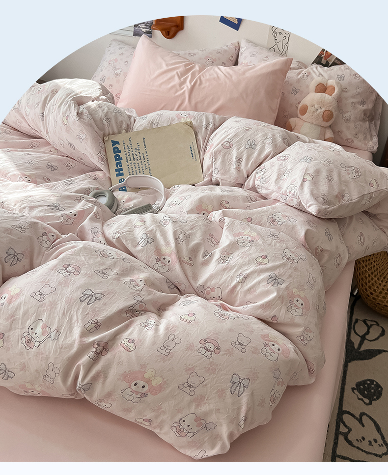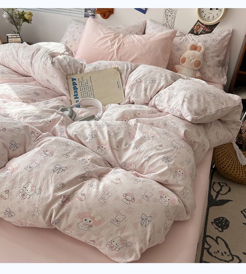 当前位置: 91家纺网 > 商品网购 > 床品套件 > 四件套 > 水洗棉四件套 > 罗亿家纺 2025新款软绵绵的双拼印花小清新云朵皱皱水洗棉四件套(含买家秀) 乐蒂的好朋友