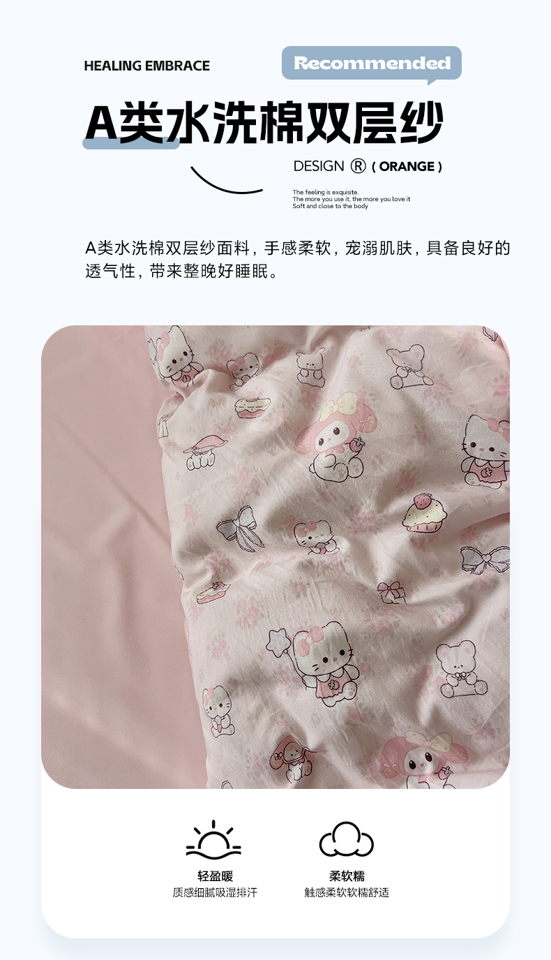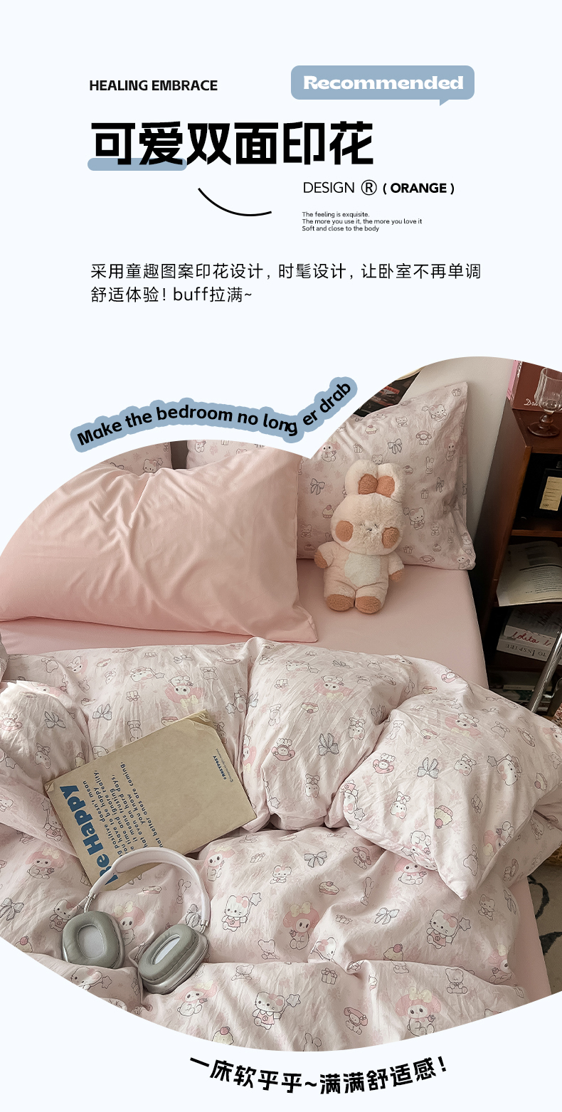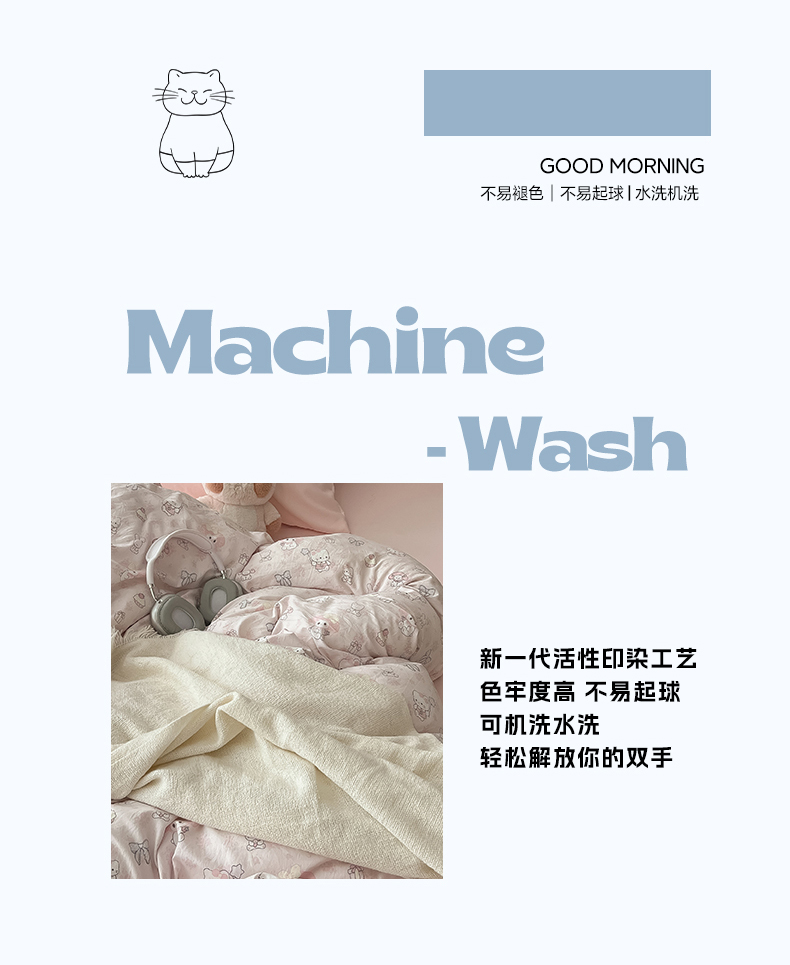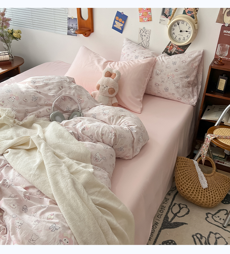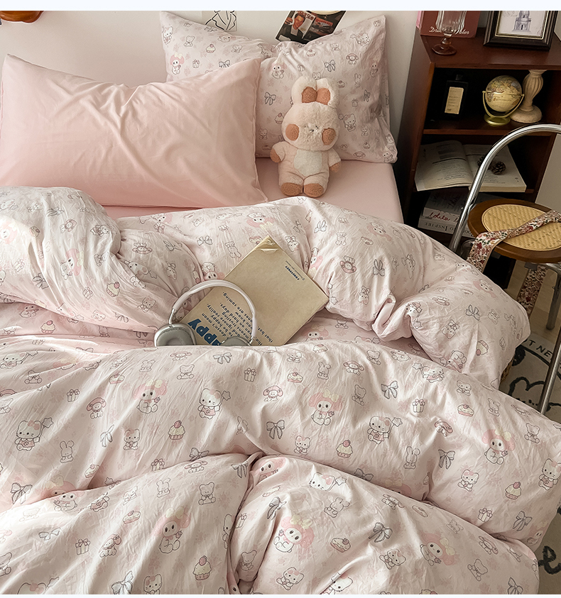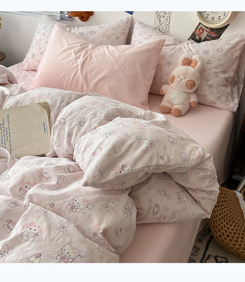 当前位置: 91家纺网 > 商品网购 > 床品套件 > 四件套 > 水洗棉四件套 > 罗亿家纺 2025新款软绵绵的双拼印花小清新云朵皱皱水洗棉四件套(含买家秀) 乐蒂的好朋友