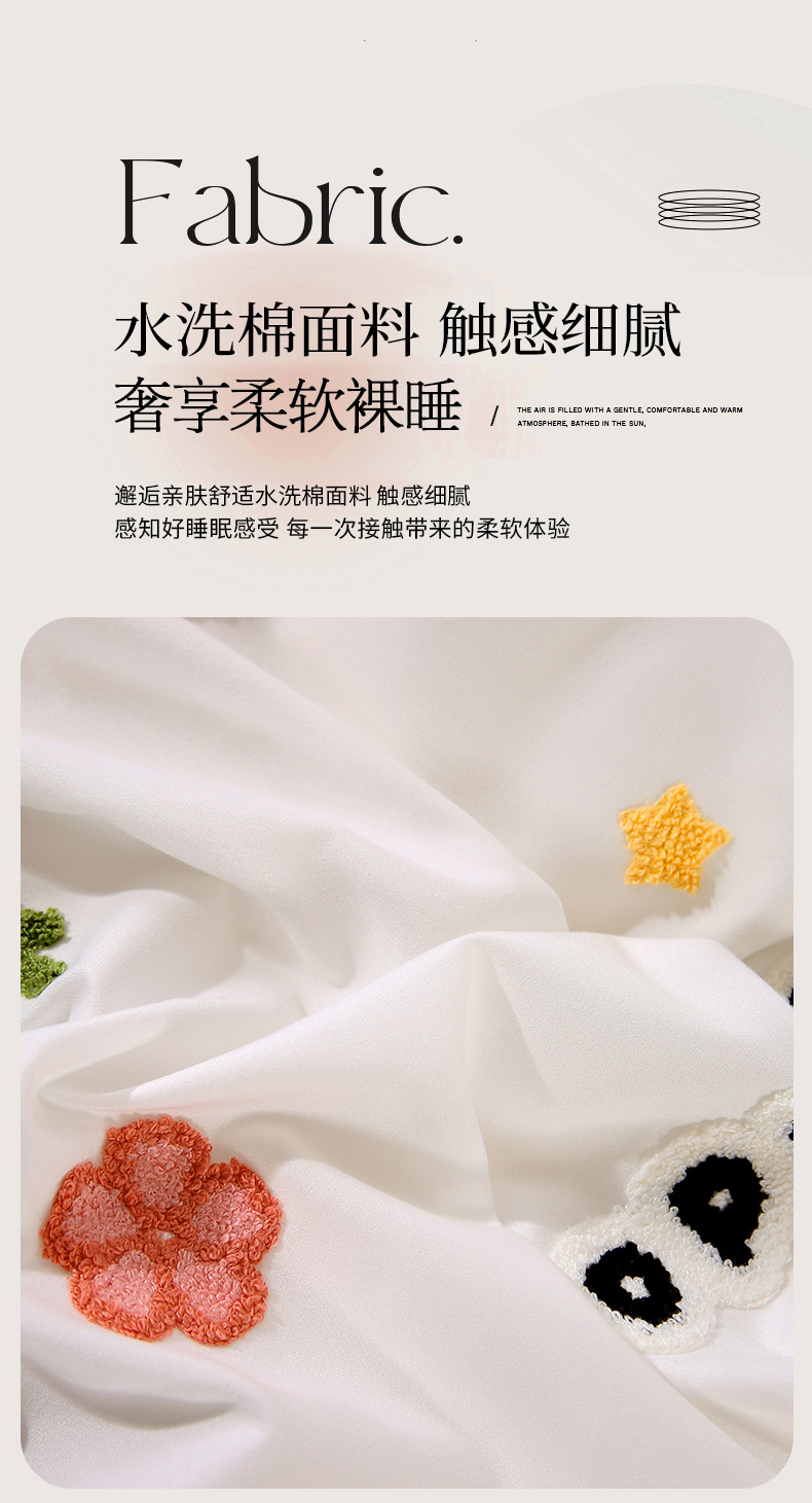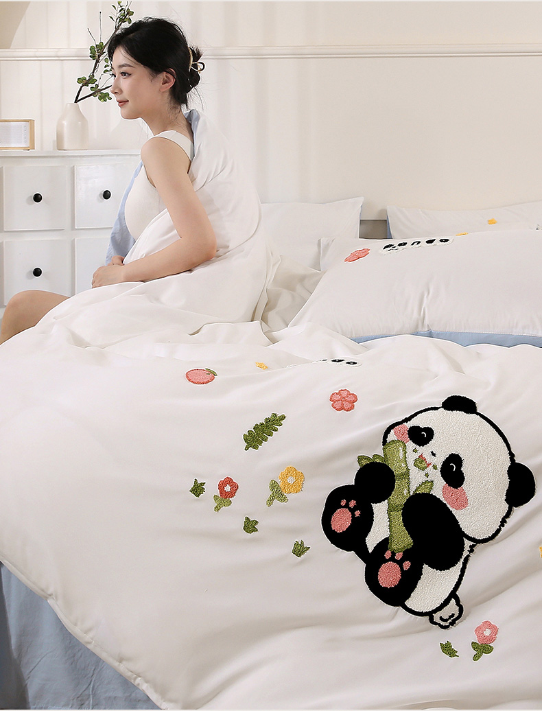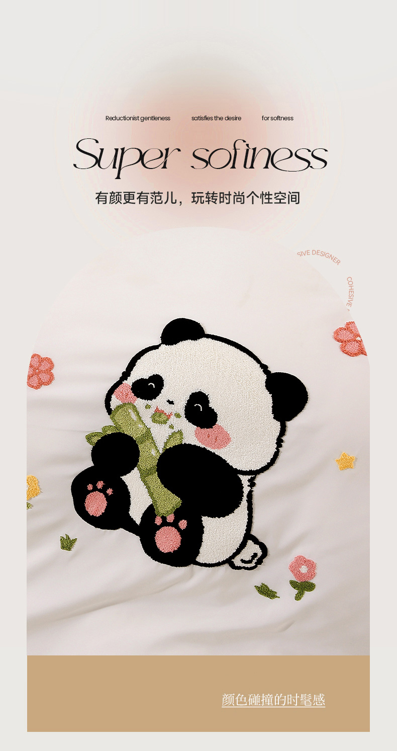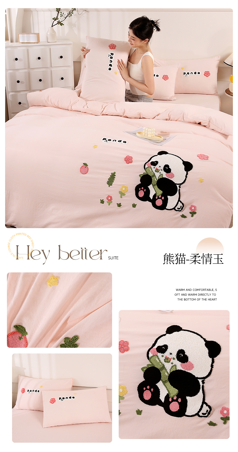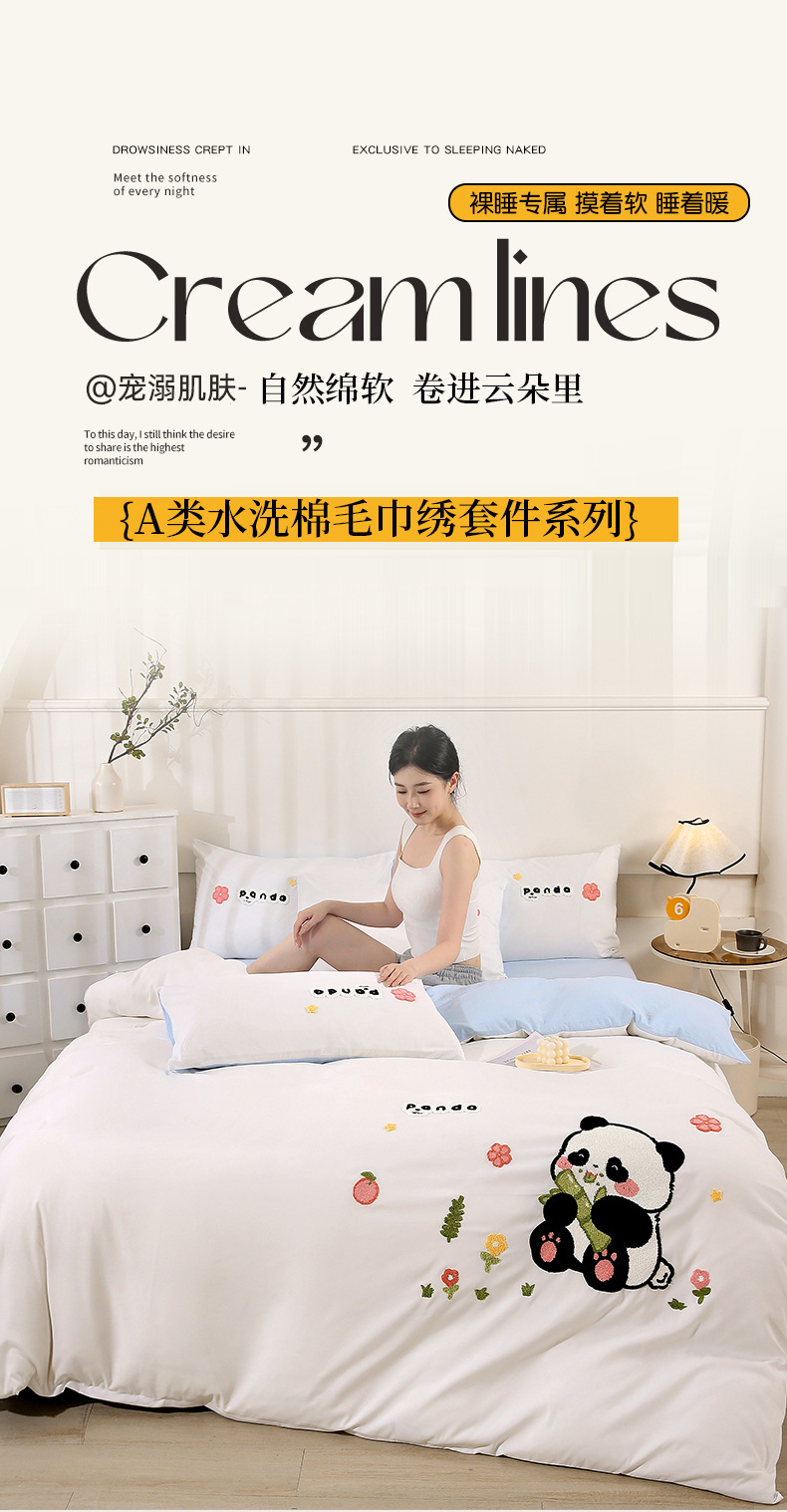 商品名称:优米家纺 2025新款A类水洗棉毛巾绣四件套-熊猫 熊猫-神秘紫