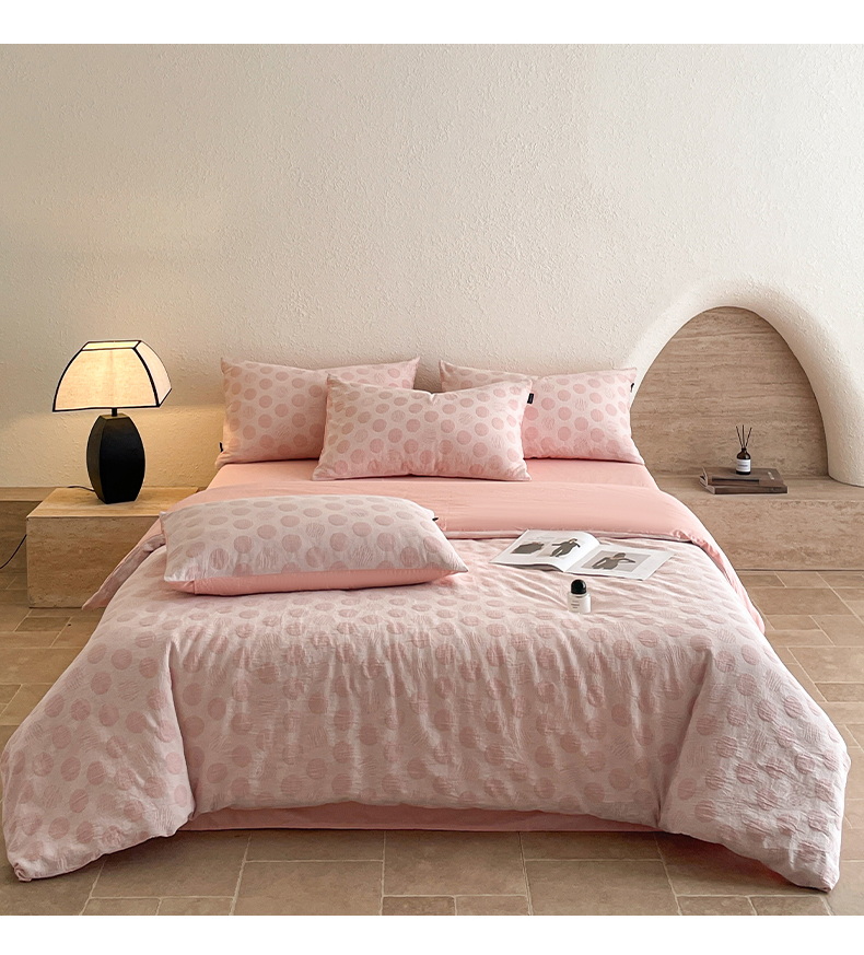 当前位置: 91家纺网 > 商品网购 > 床品套件 > 四件套 > 全棉普通四件套 > 拼社2025新款全棉色织水洗三层纱提花纯棉四件套全棉单被套【提供买家秀】 波妞-粉