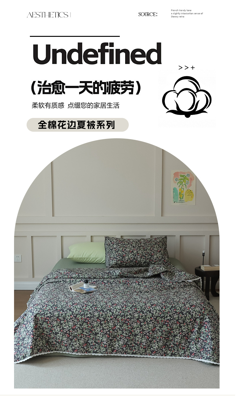 当前位置: 91家纺网 > 商品网购 > 床品套件 > 四件套 > 夏被四件套 > 棉眠 2025新款纯棉花边夏被套件 小红莓