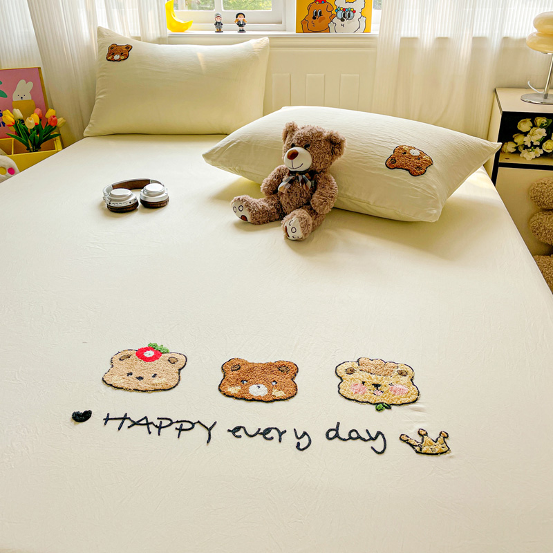 海岛哥哥 2025春夏新款卡通毛巾绣床笠 三只小熊-黄