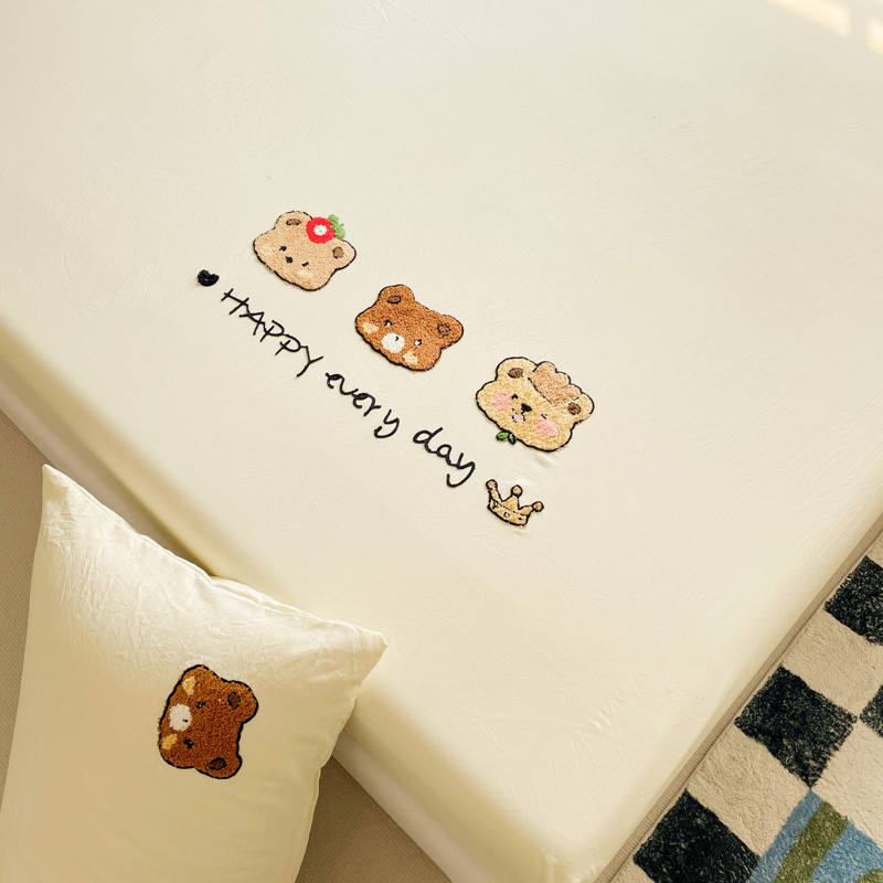 • 91家纺网 家纺一手货源 找家纺 海岛哥哥 2025春夏新款卡通毛巾绣床笠 三只小熊-黄