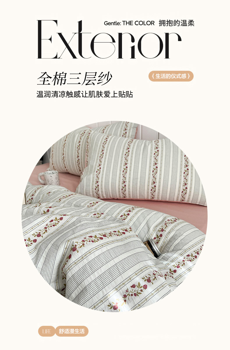 商品名称:倾慕2025年新款三层纱田园风套件单被套系列 田梦红粉