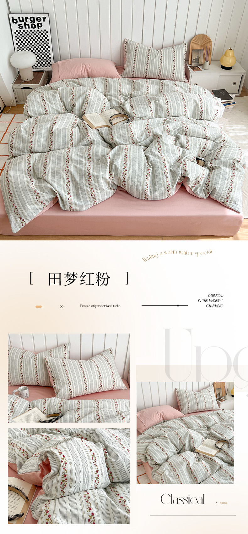 (总)倾慕 2025新款数码风加厚保暖套件系列四件套,达琳粉,达琳蓝,达琳紫,花颂卡其,花信粉,花之韵粉,花织卡其,花织蓝,花织紫粉,流光紫,山奈蓝,雾野蓝