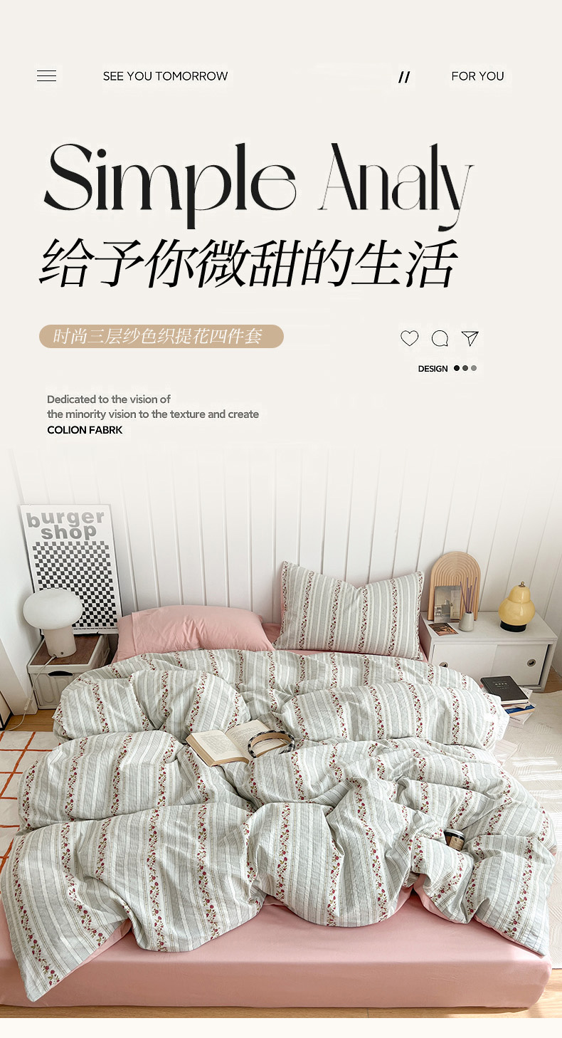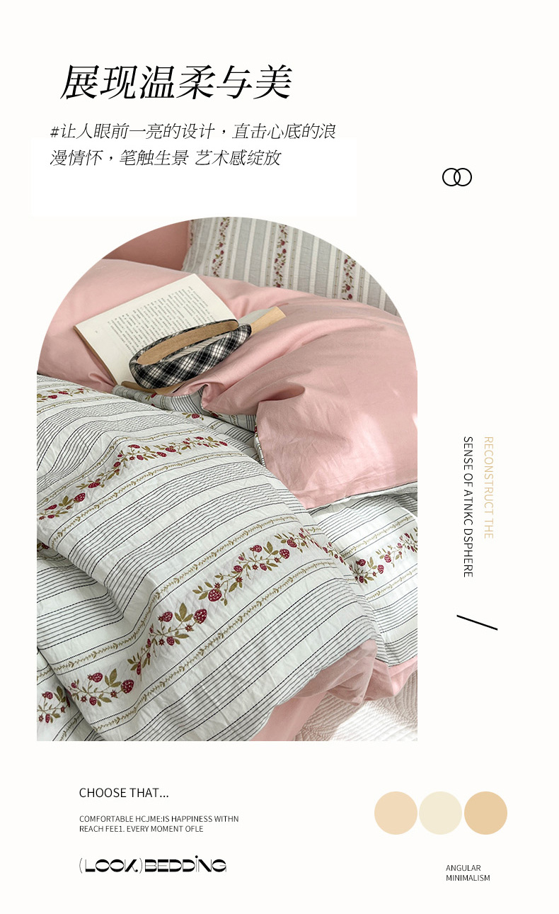 (总)倾慕 2025新款数码纯棉加厚磨毛产品系列四件套,蝶舞粉,蕾丝花粉,丽思黄,丽思兰,绿茵,梦幻屋紫,清风来咖,晚笙粉,云嘉粉,芷兰粉