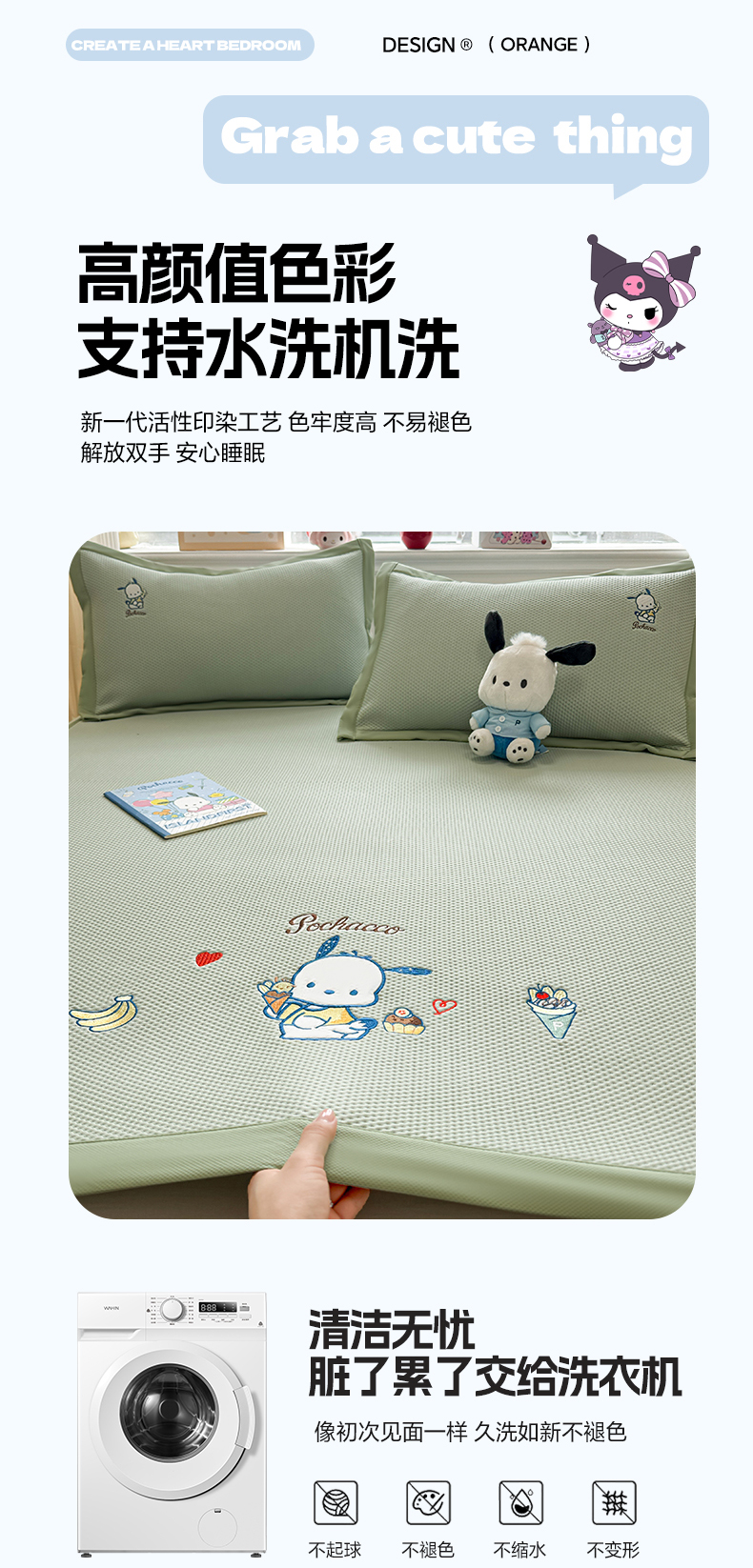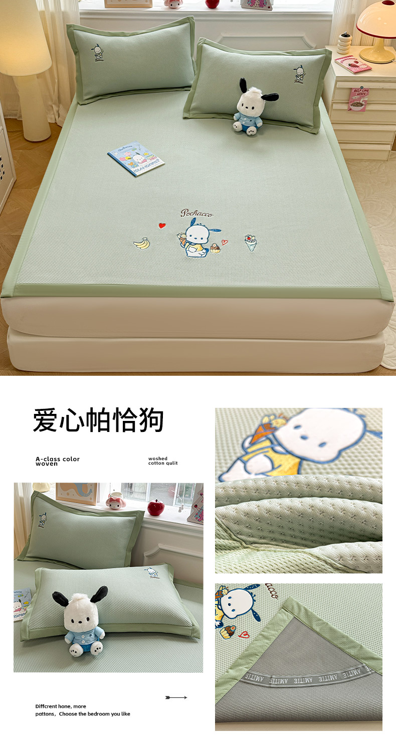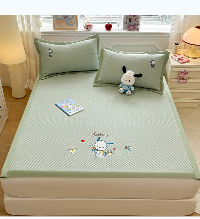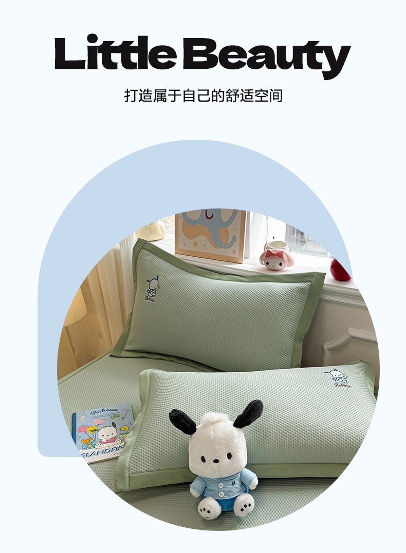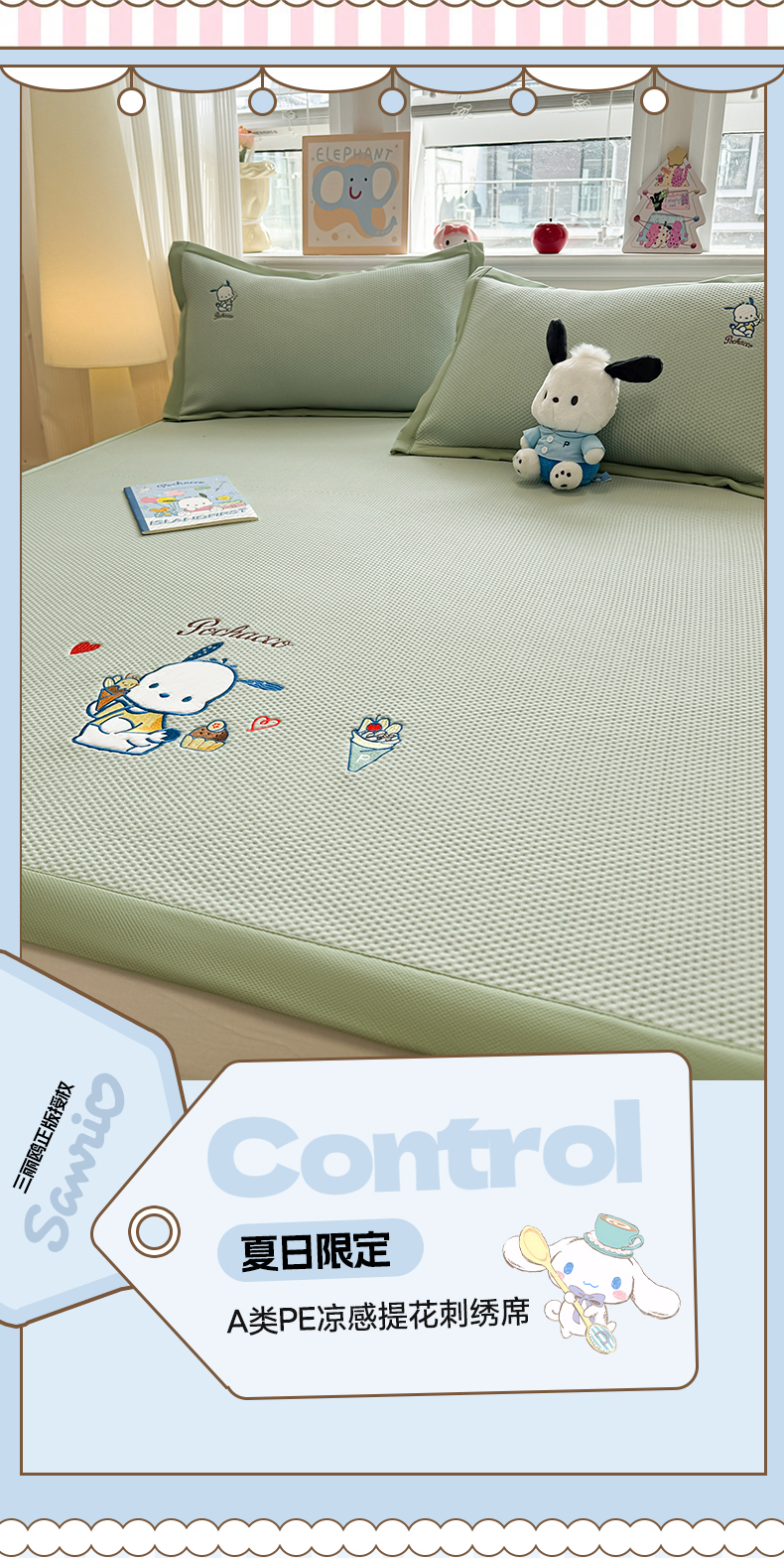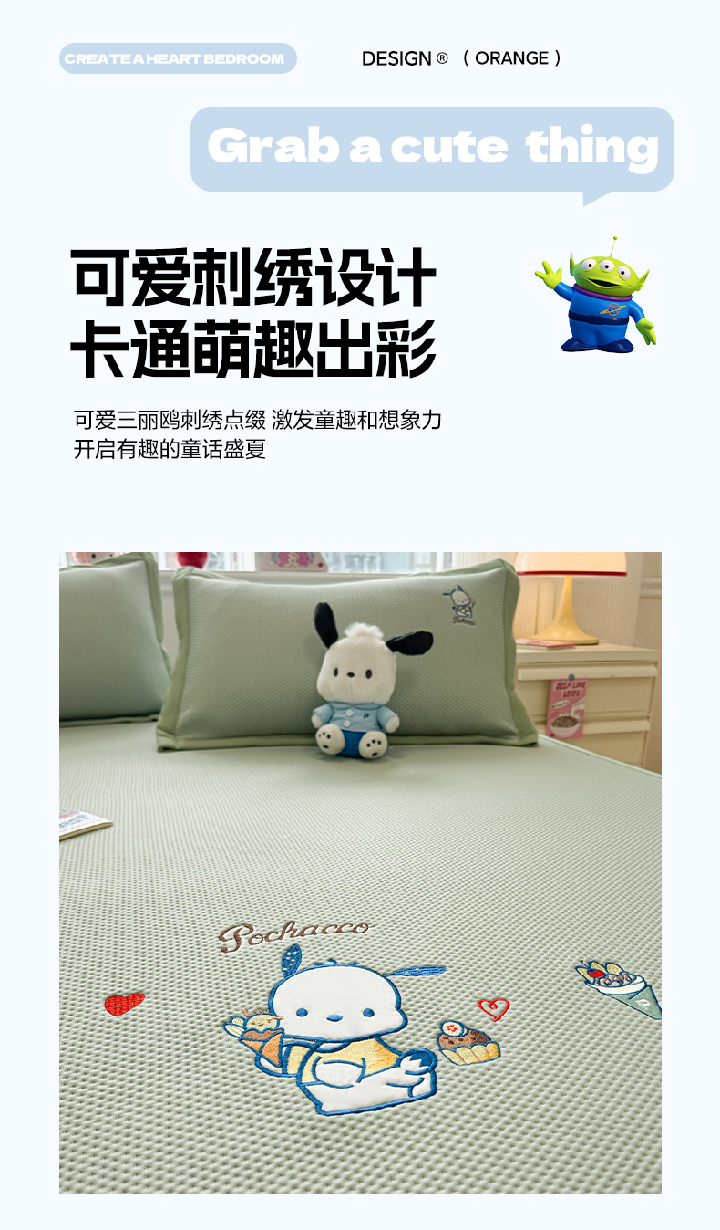 商品名称:蓝邻家纺 2025年新款PE提花正版三丽鸥刺绣凉席系列-场景二 爱心帕恰狗