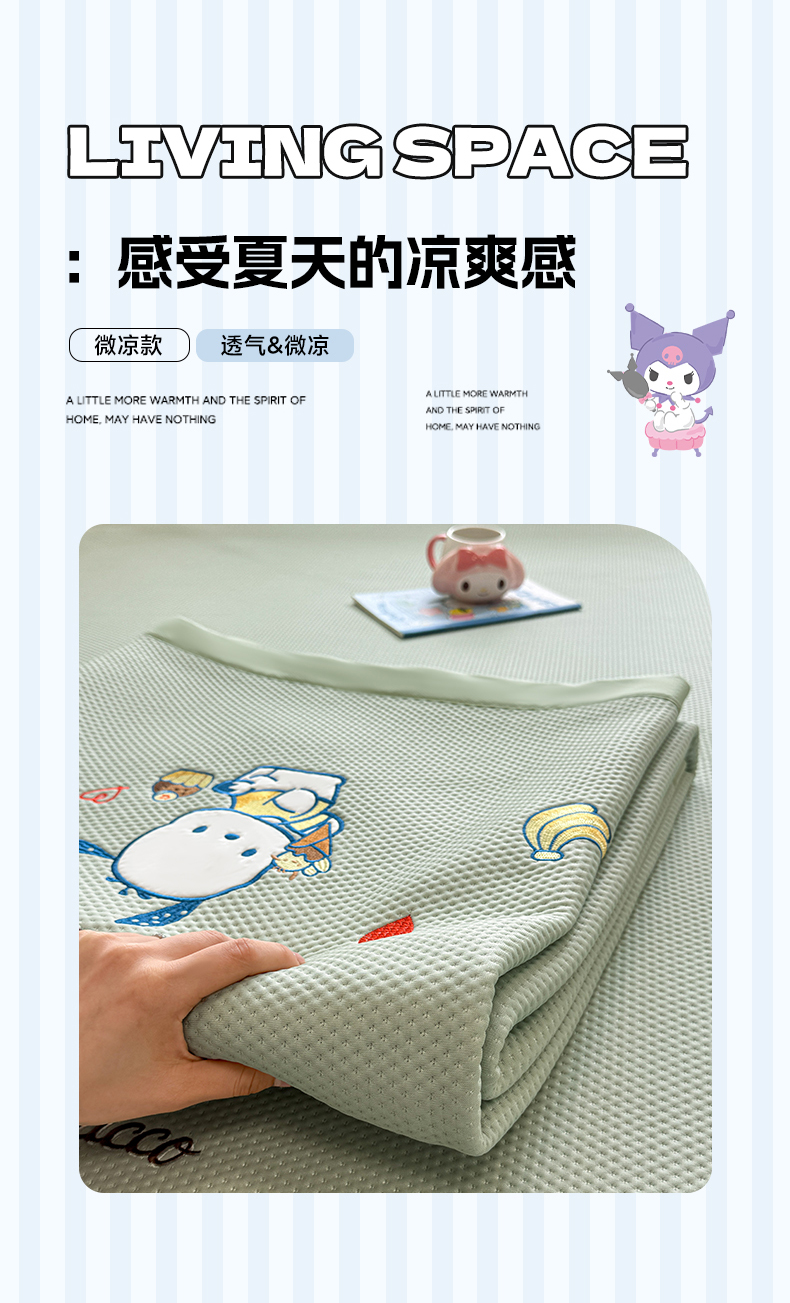 蓝邻家纺 2025年新款PE提花正版三丽鸥刺绣凉席系列-场景二 爱心帕恰狗