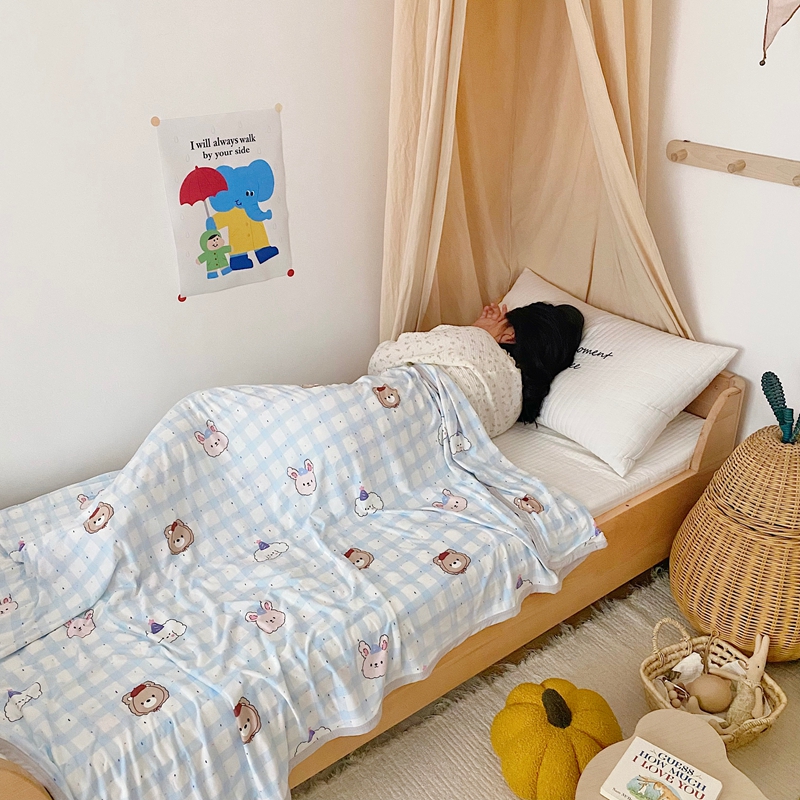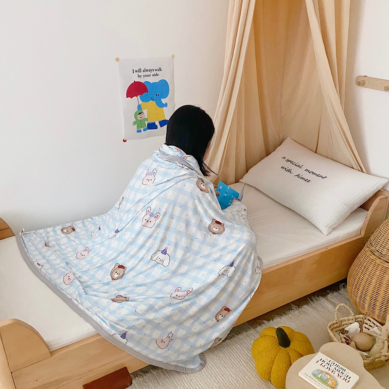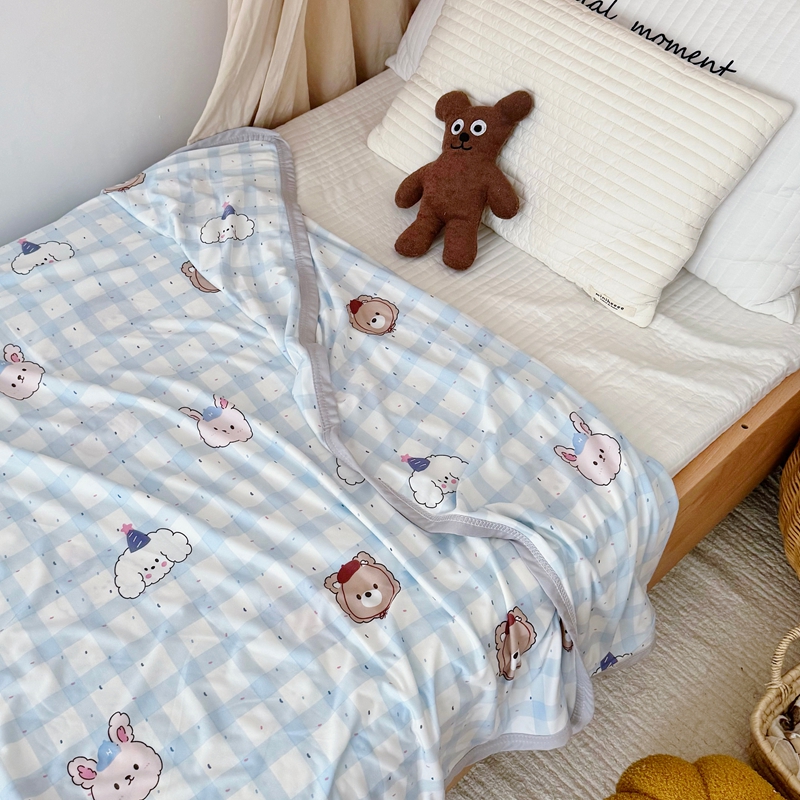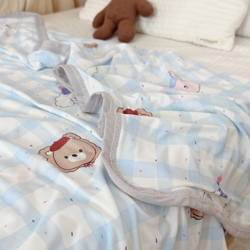 星期八 2025新款婴儿裸睡级冰丝毯凉感毯 格子熊蓝