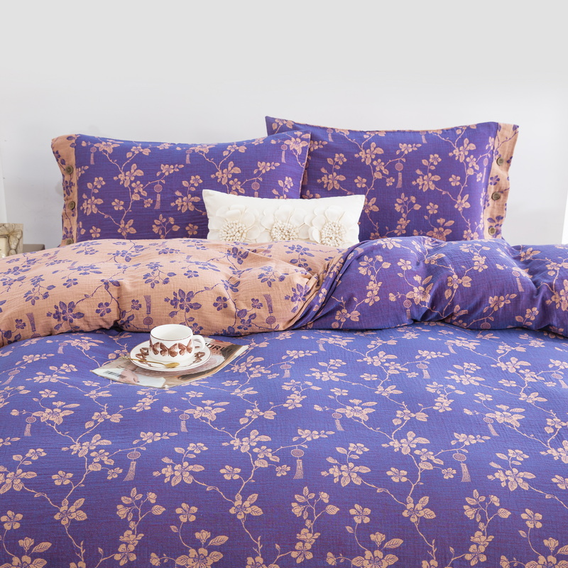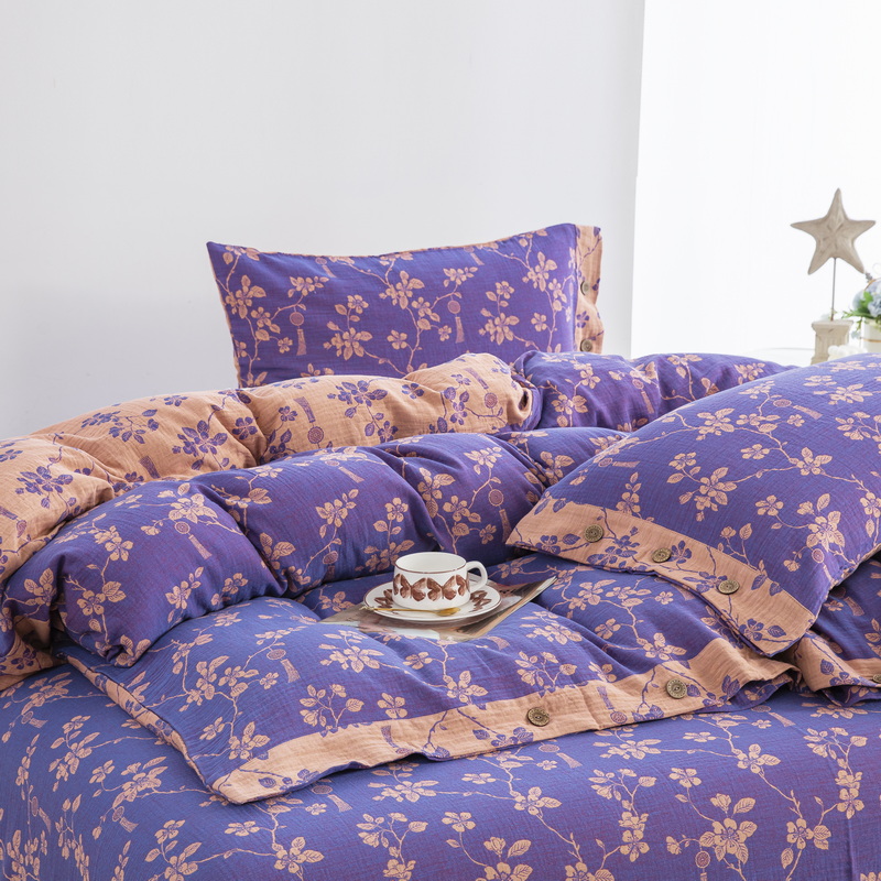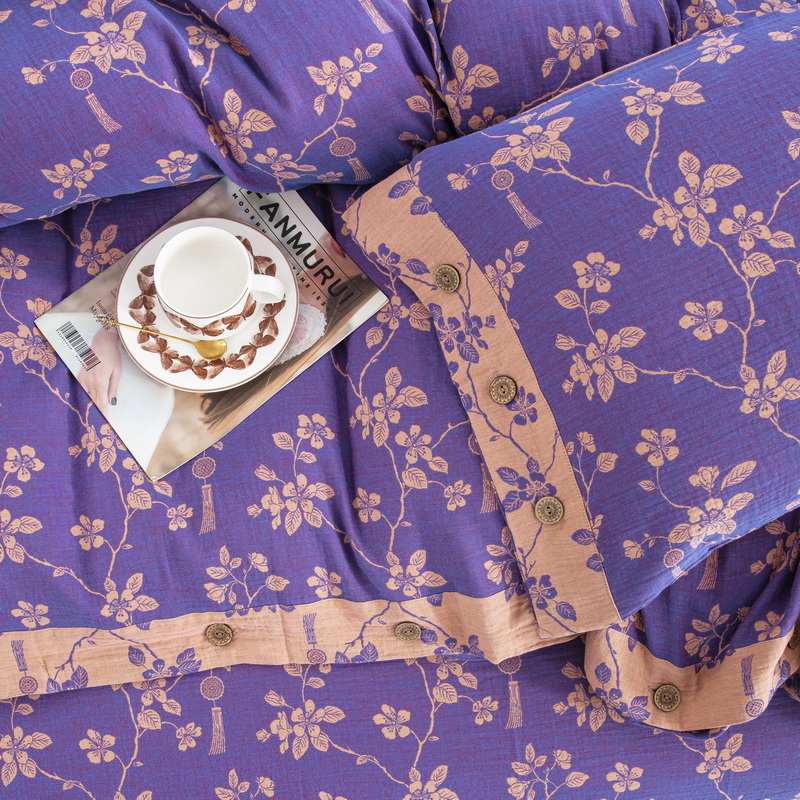 商品名称:鲁爱家纺供货 2025新款全棉色织双层纱纽扣四件套 春晖-紫罗兰